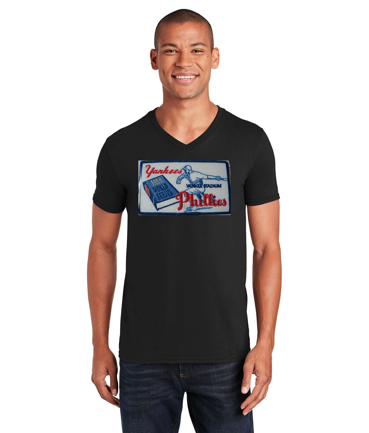 1950 MLB World Series Patch New York Yankees vs Philadelphia Phillies Baseball Logo Symbol Emblem Customized Design on Unisex V-Neck T-Shirt Tee