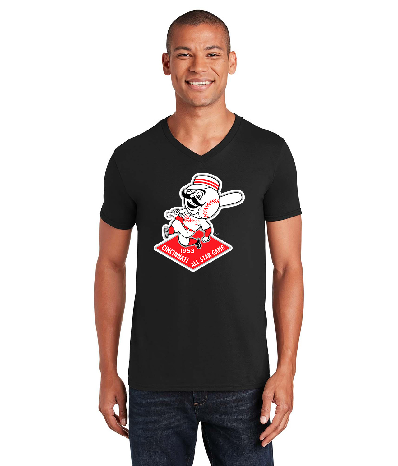 1953 MLB All-Star Game At Crosley Field Cincinnati Ohio Baseball Logo Symbol Emblem Customized Design on Unisex V-Neck T-Shirt Tee