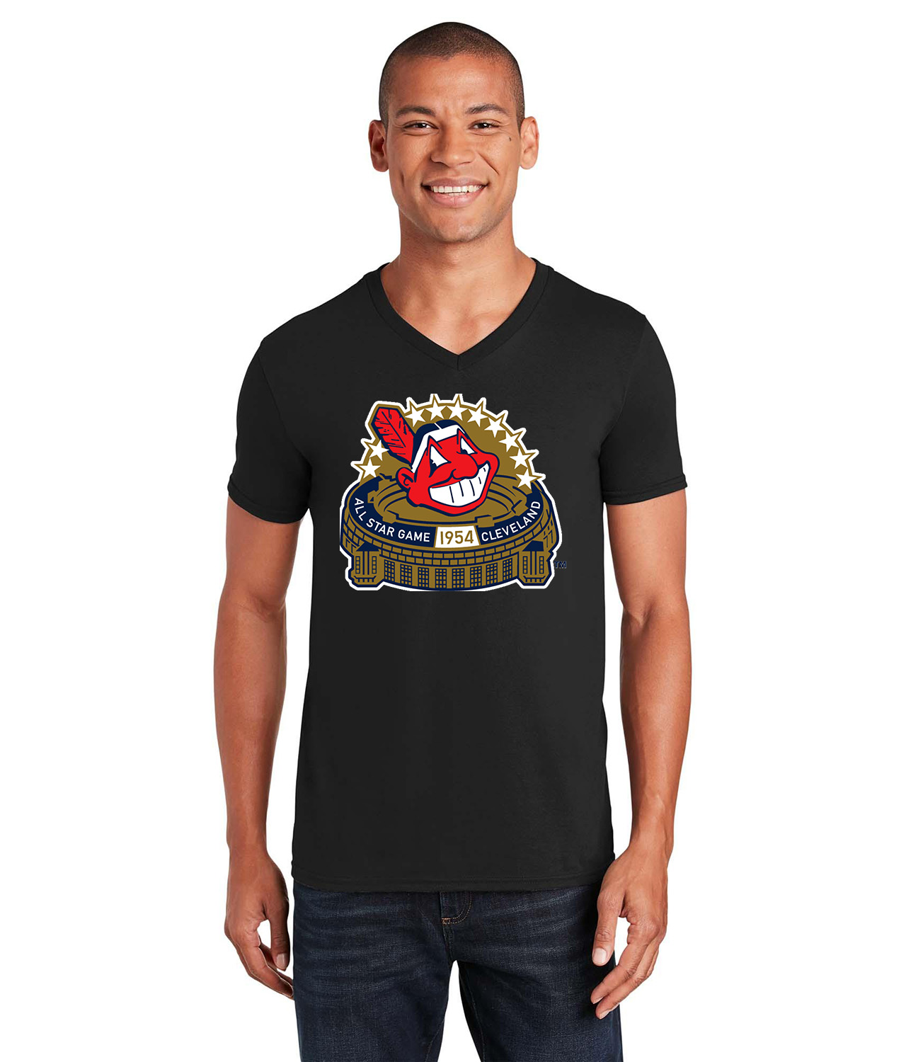 1954 MLB All-Star Game At Municipal Stadium Cleveland Ohio Baseball Logo Symbol Emblem Customized Design on Unisex V-Neck T-Shirt Tee