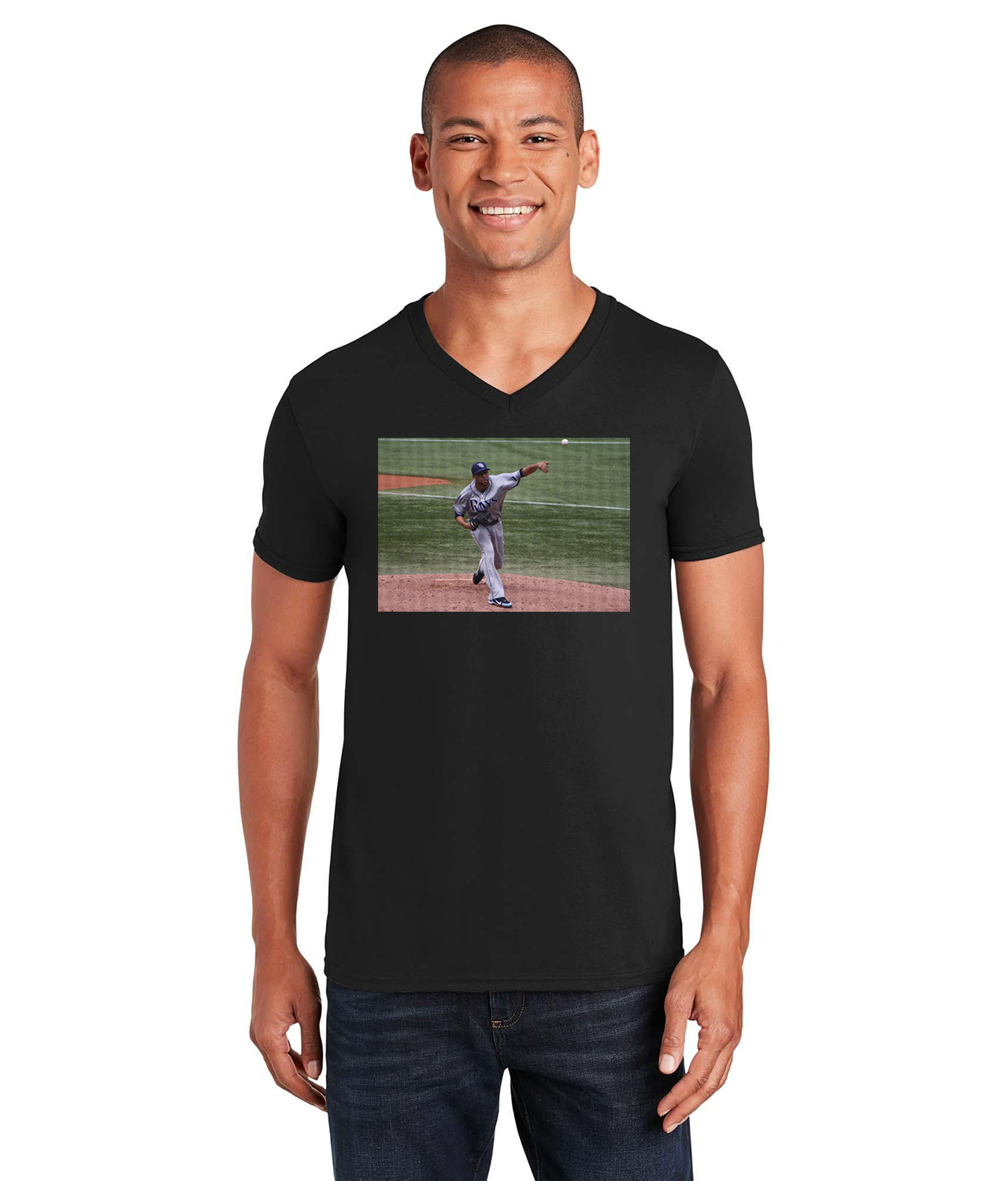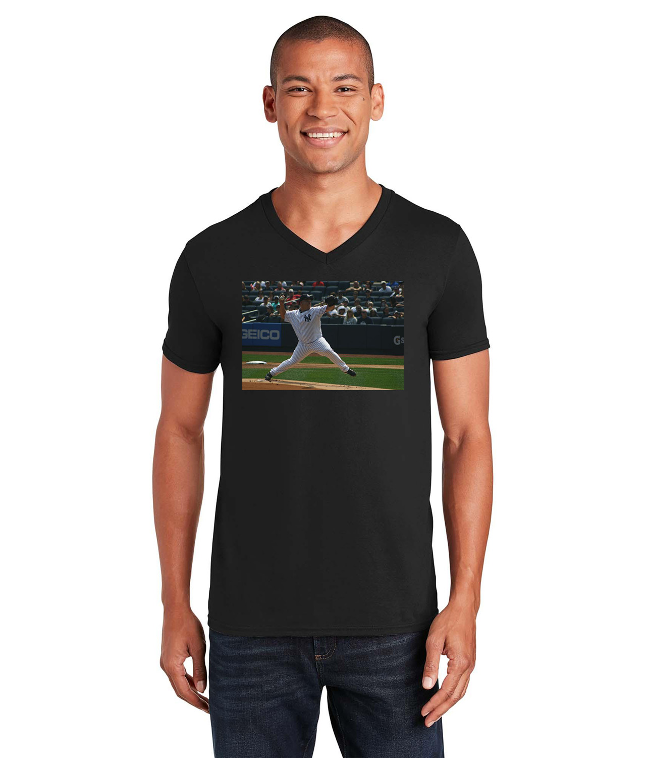 2011 Pitcher New York Yankees Photo Baseball Logo Symbol Emblem Customized Design on Unisex V-Neck T-Shirt Tee