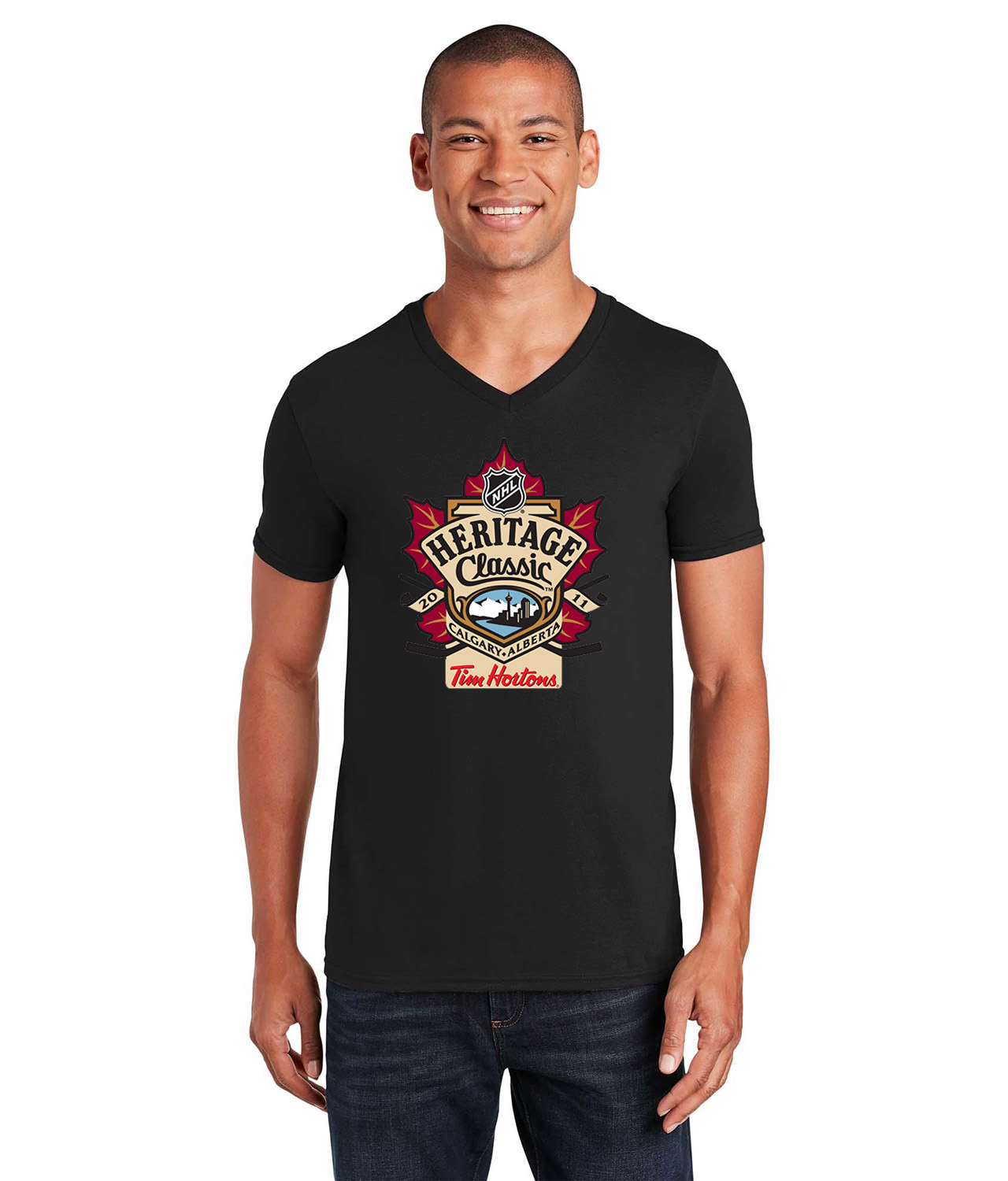 2011 Tim Hortons NHL Heritage Classic – Calgary Hockey Logo Symbol Emblem Customized Design on Unisex V-Neck T-Shirt Tee