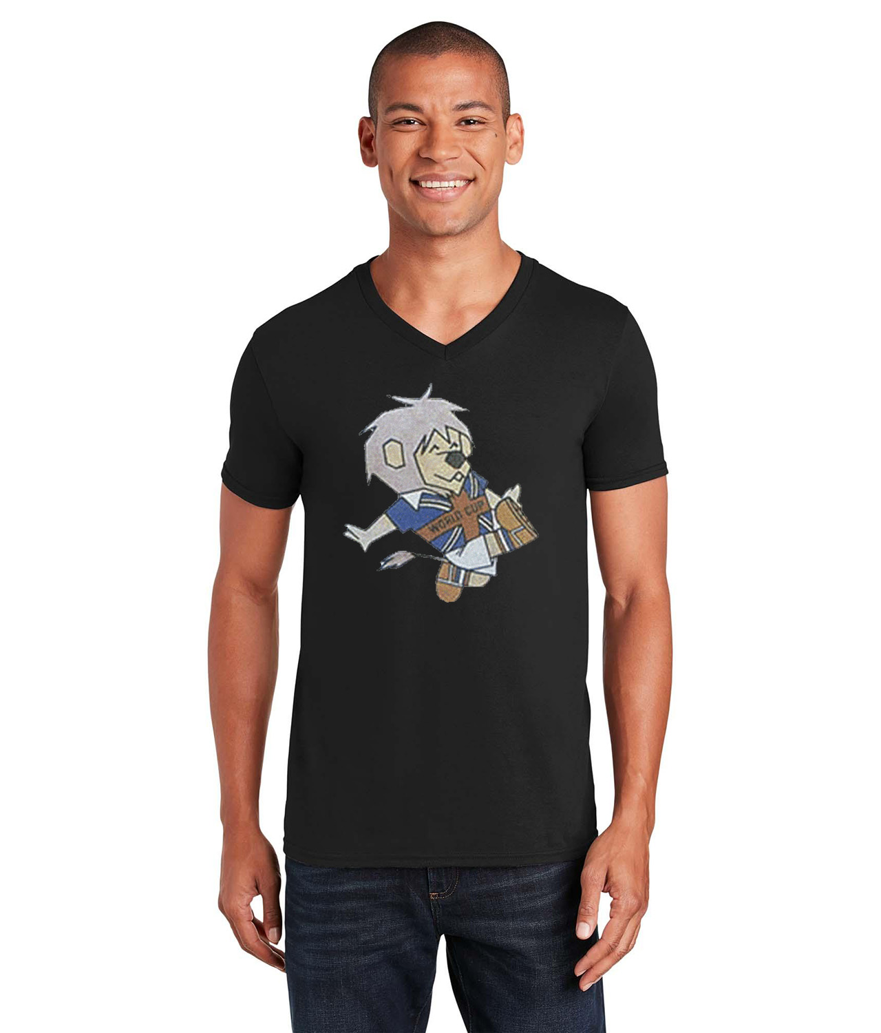 1966 FIFA World Cup England Mascot Willie Soccer Logo Symbol Emblem Customized Design on Unisex V-Neck T-Shirt Tee