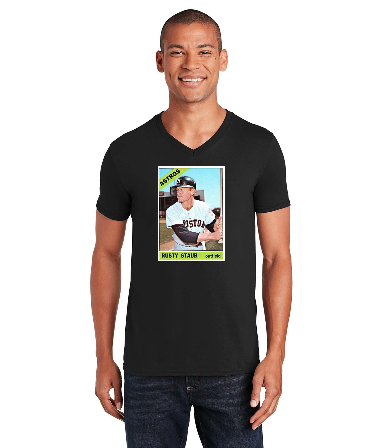 1965 Rusty Staub Houston Astros Photo Baseball Logo Symbol Emblem Customized Design on Unisex V-Neck T-Shirt Tee
