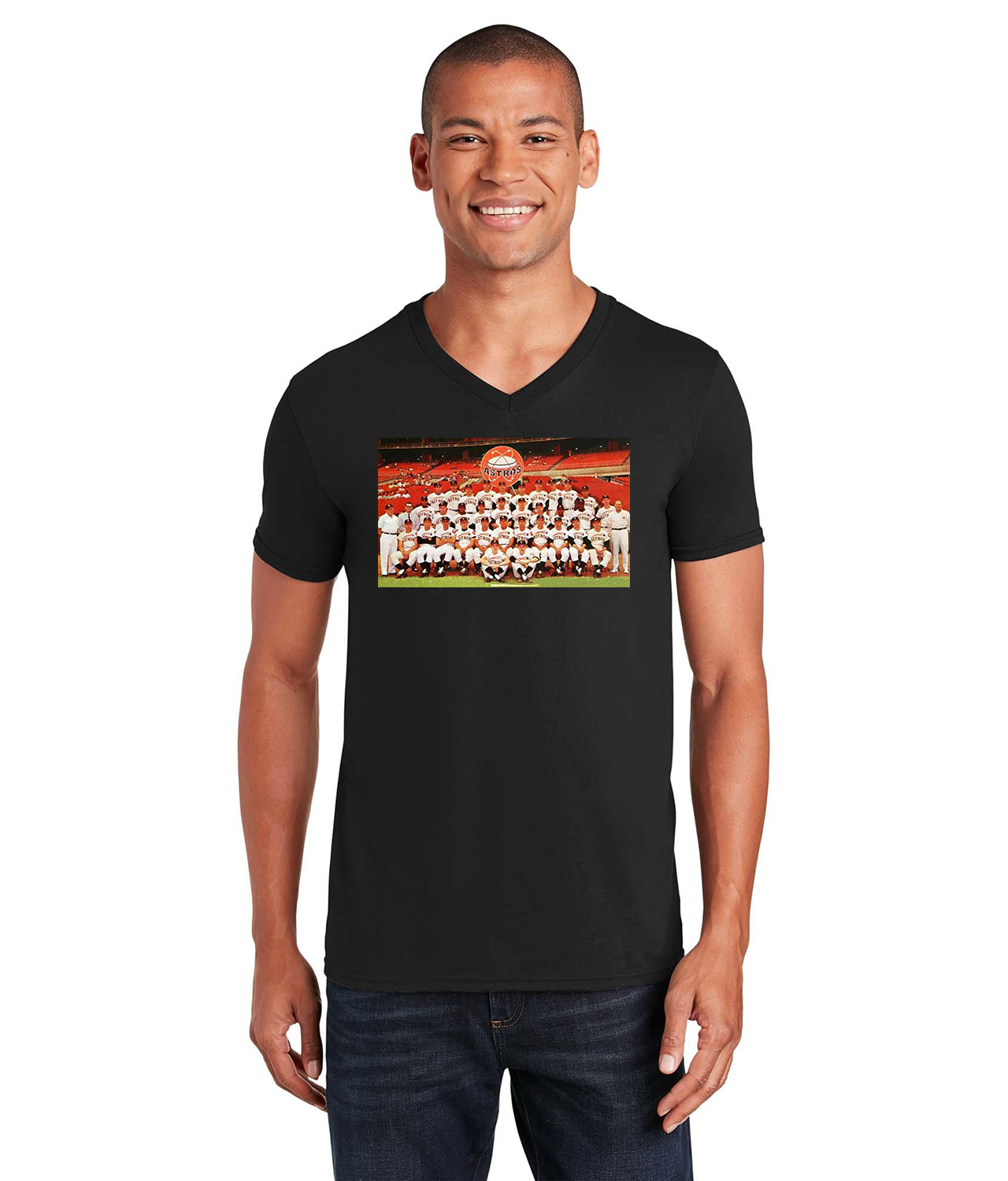 1965 Team Houston Astros Photo Baseball Logo Symbol Emblem Customized Design on Unisex V-Neck T-Shirt Tee