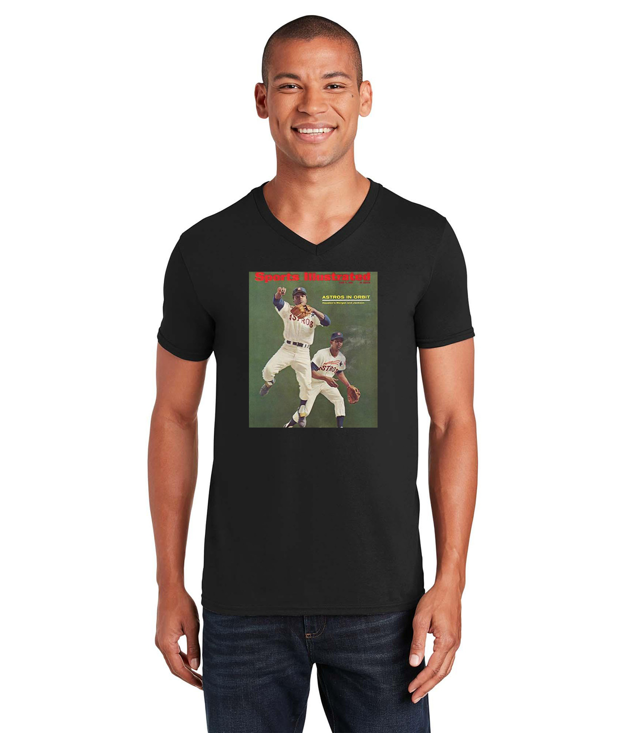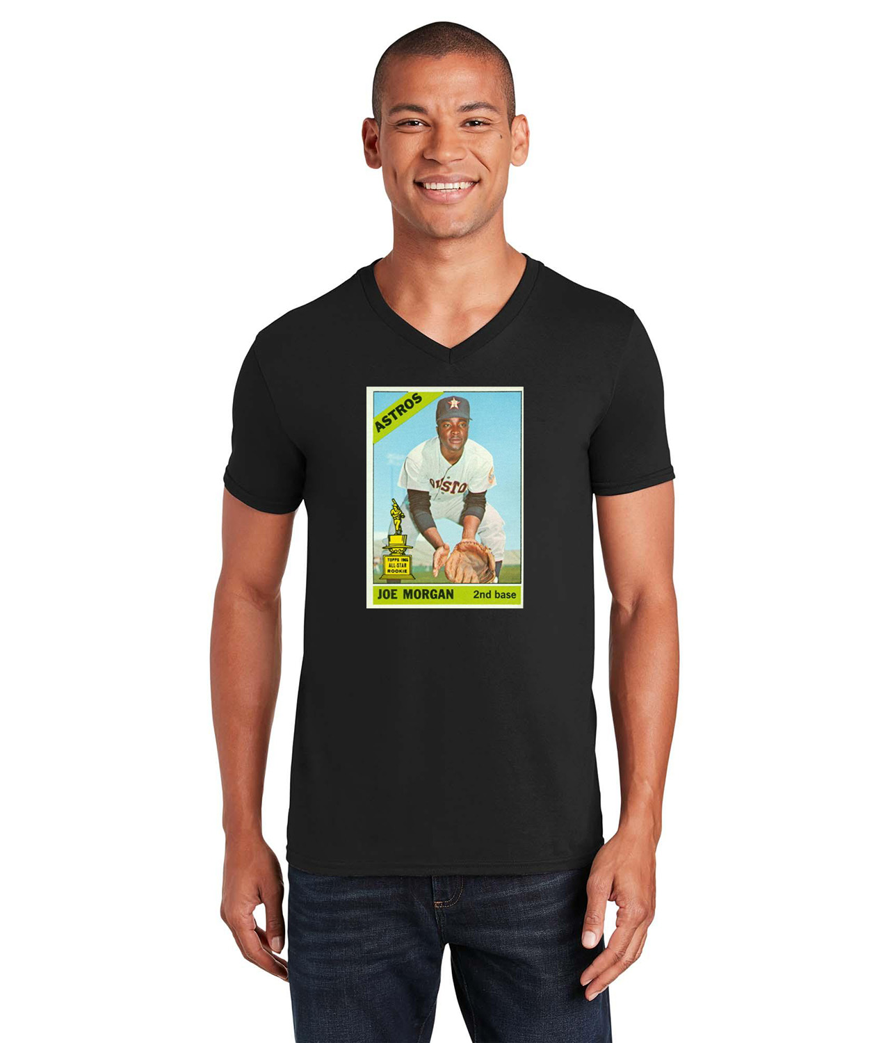 1965 Joe Morgan Houston Astros Photo Baseball Logo Symbol Emblem Customized Design on Unisex V-Neck T-Shirt Tee