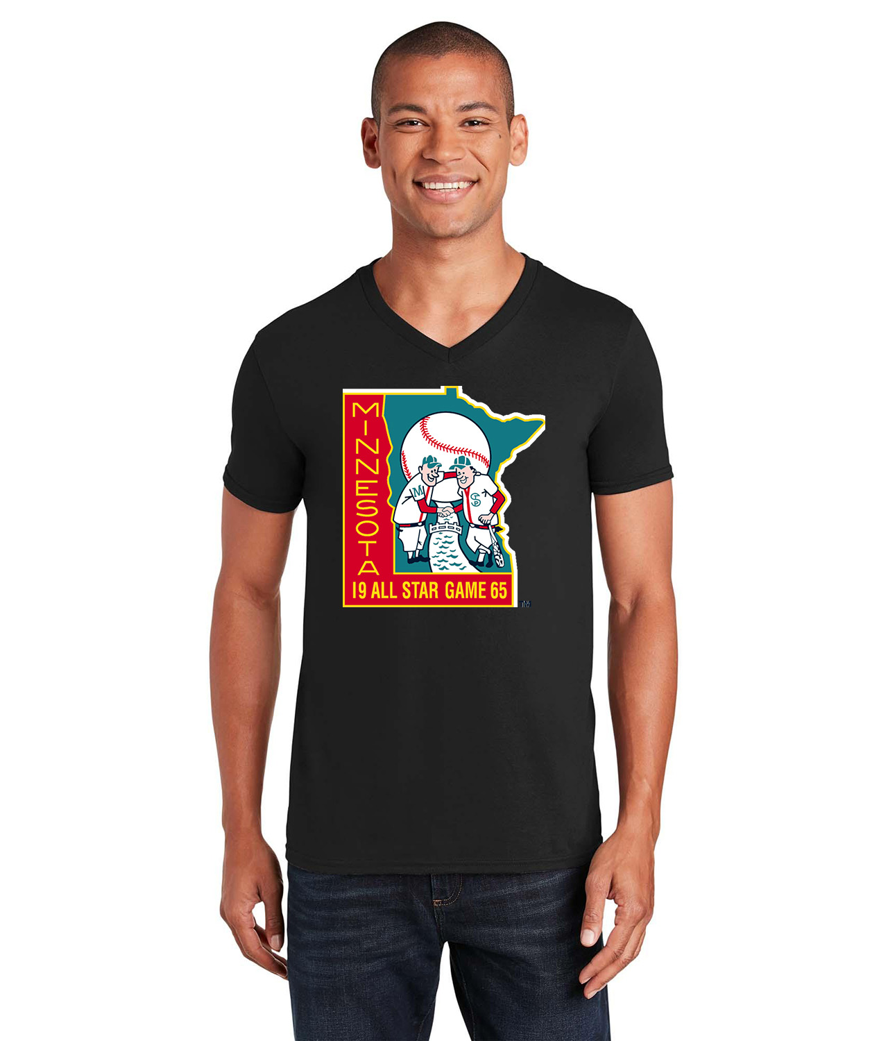 1965 MLB All-Star Game At Metropolitan Stadium Bloomington Minnesota Baseball Logo Symbol Emblem Customized Design on Unisex V-Neck T-Shirt Tee
