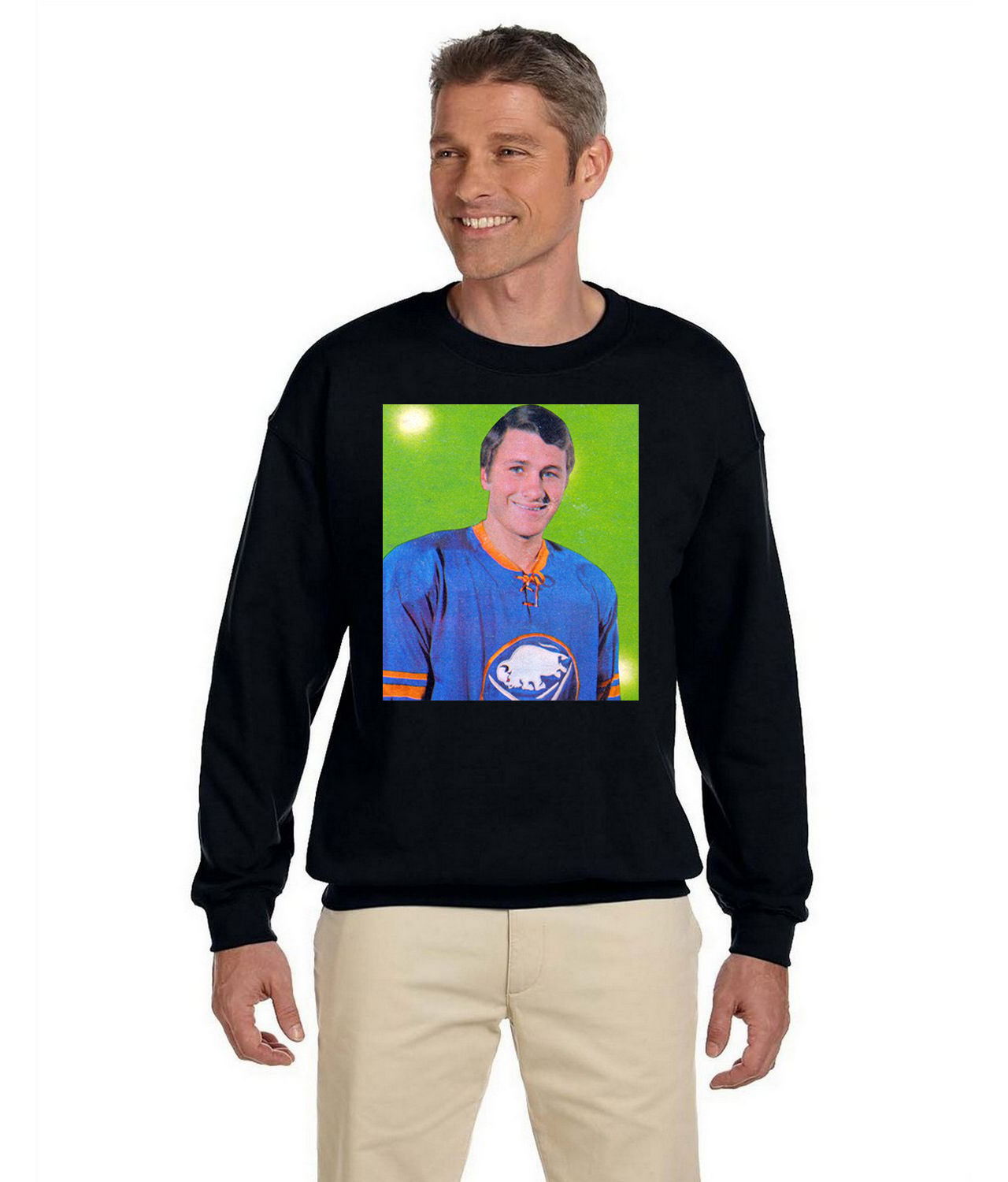 1970-71 Buffalo Sabres Gilbert Perreault Photo Hockey Logo Symbol Emblem Customized Design on Unisex Crewneck Sweatshirt