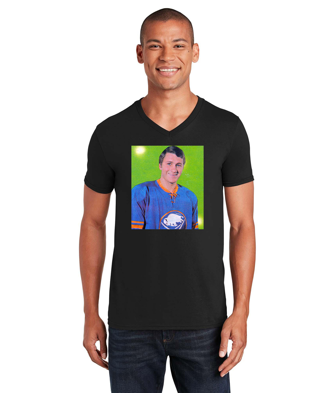 1970-71 Buffalo Sabres Gilbert Perreault Photo Hockey Logo Symbol Emblem Customized Design on Unisex V-Neck T-Shirt Tee