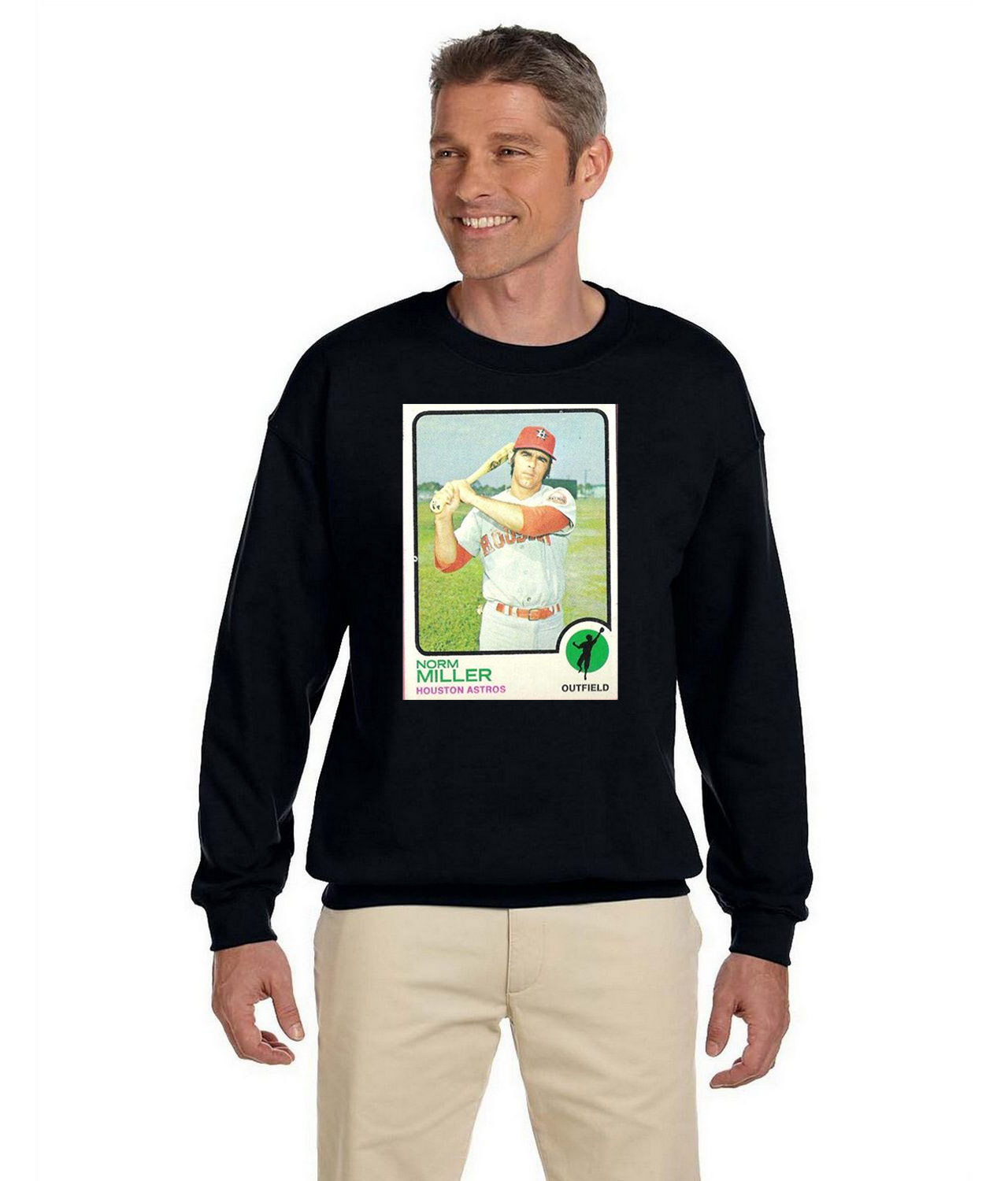 1972 Norm Miller Houston Astros Photo Baseball Logo Symbol Emblem Customized Design on Unisex Crewneck Sweatshirt