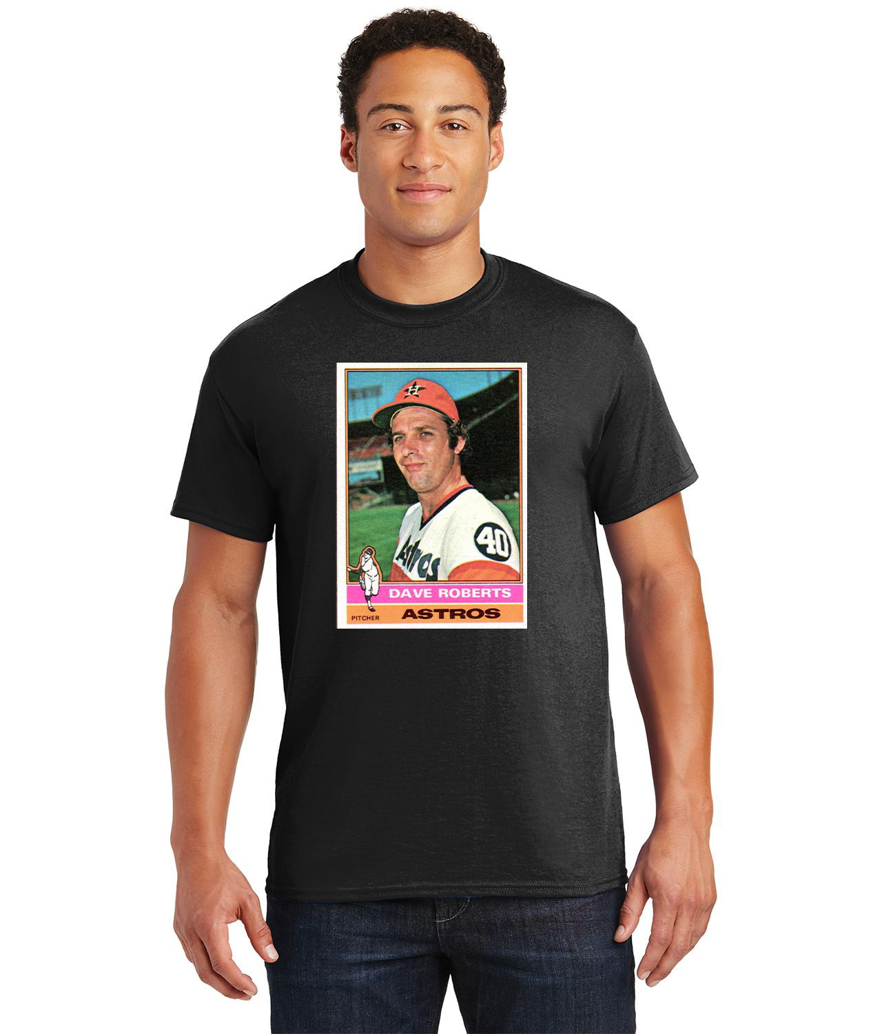 1975 Dave Roberts Houston Astros Photo Baseball Logo Customized Design on Unisex Tshirt Tee
