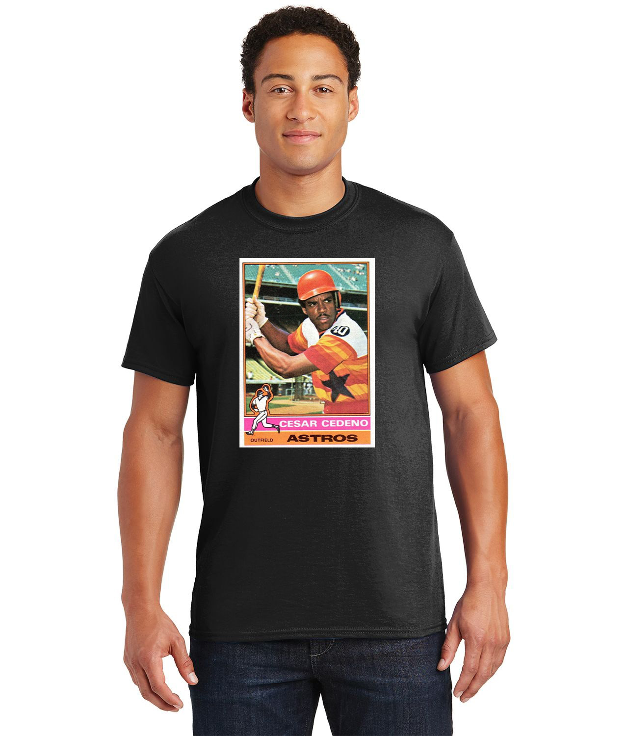 1975 Cesar Cedeno Houston Astros Photo Baseball Logo Customized Design on Unisex Tshirt Tee