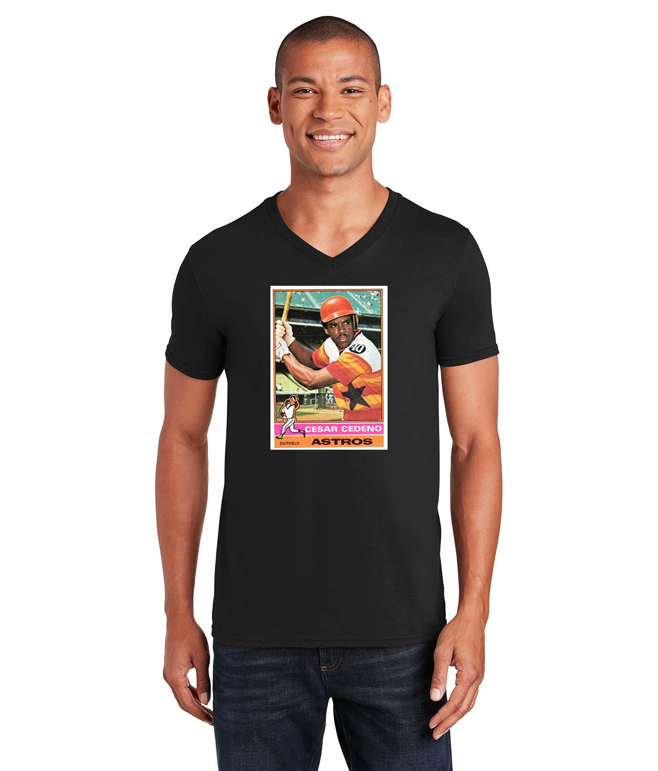 1975 Cesar Cedeno Houston Astros Photo Baseball Logo Symbol Emblem Customized Design on Unisex V-Neck T-Shirt Tee