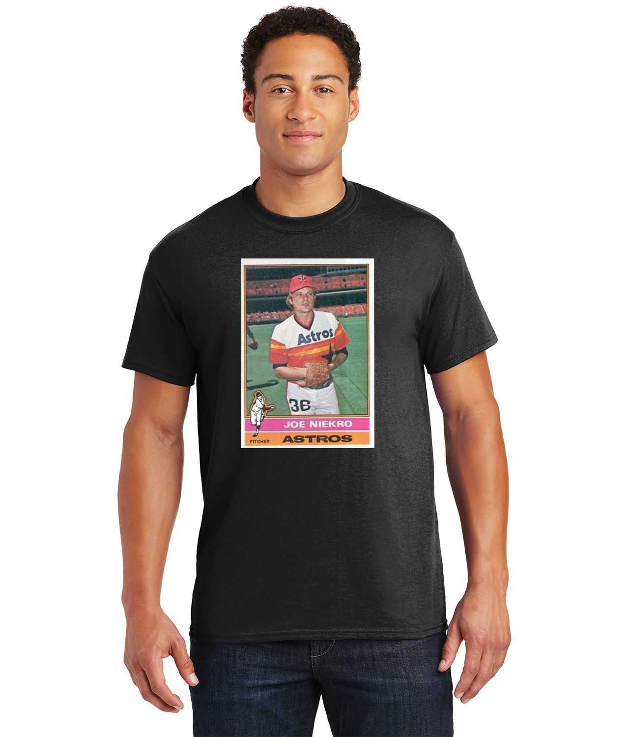 1975 Joe Niekro Houston Astros Photo Baseball Logo Customized Design on Unisex Tshirt Tee