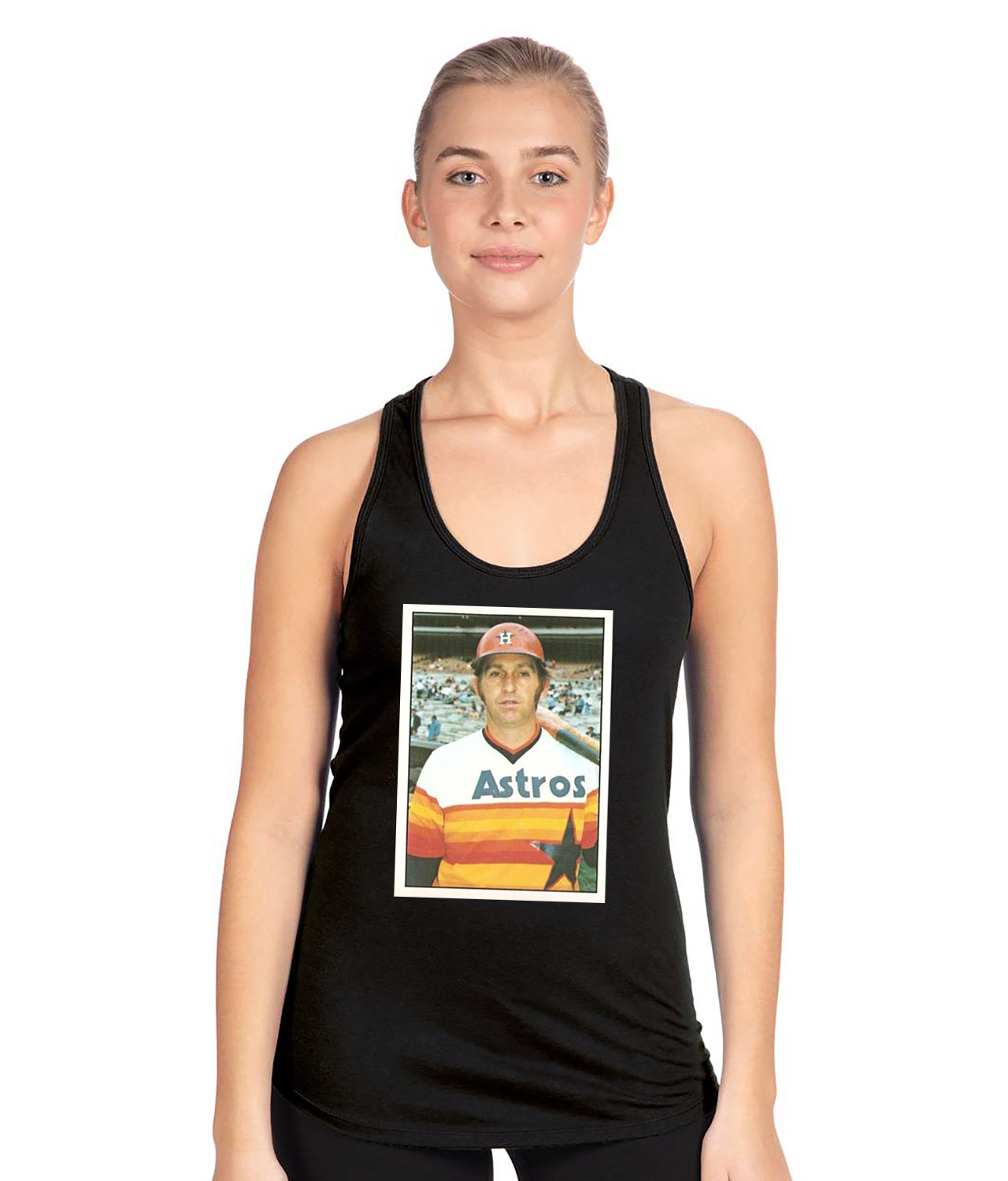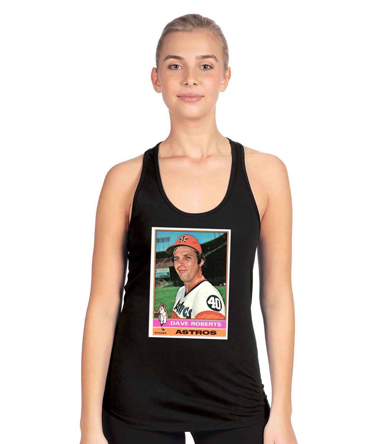 1975 Dave Roberts Houston Astros Photo Baseball Logo Symbol Emblem Customized Design on Women’s Racerback Tank Top