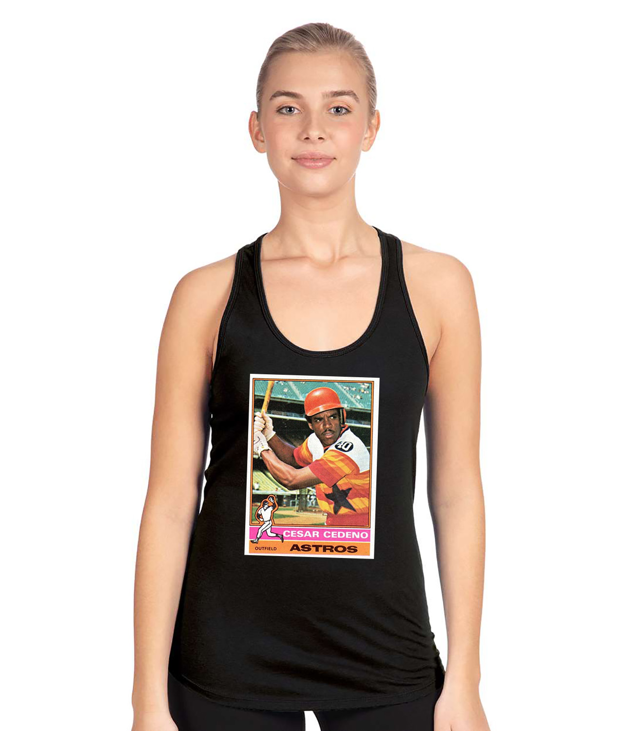 1975 Cesar Cedeno Houston Astros Photo Baseball Logo Symbol Emblem Customized Design on Women’s Racerback Tank Top