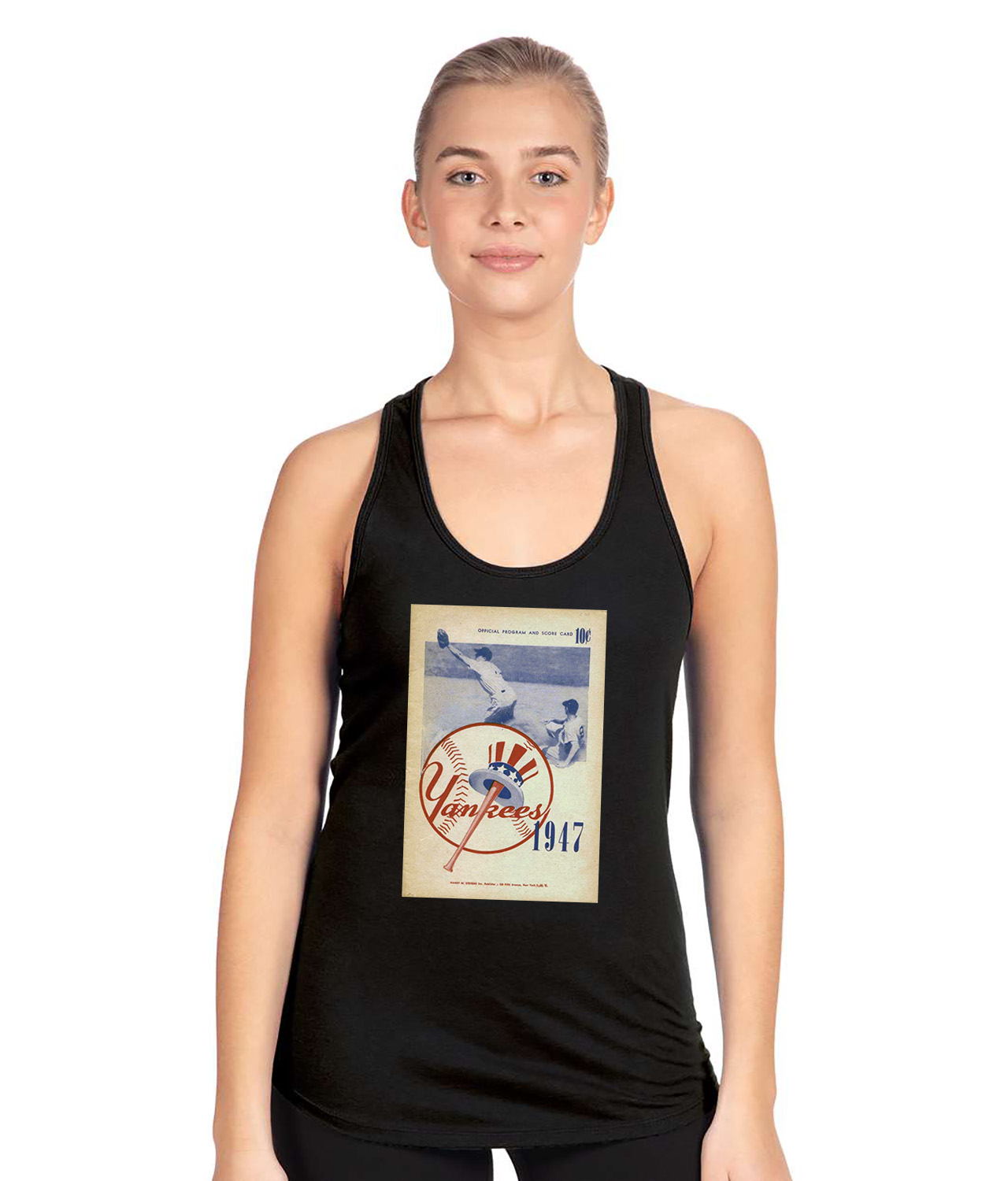 1947 New York Yankees Spring Training Program Baseball Logo Symbol Emblem Customized Design on Women’s Racerback Tank Top