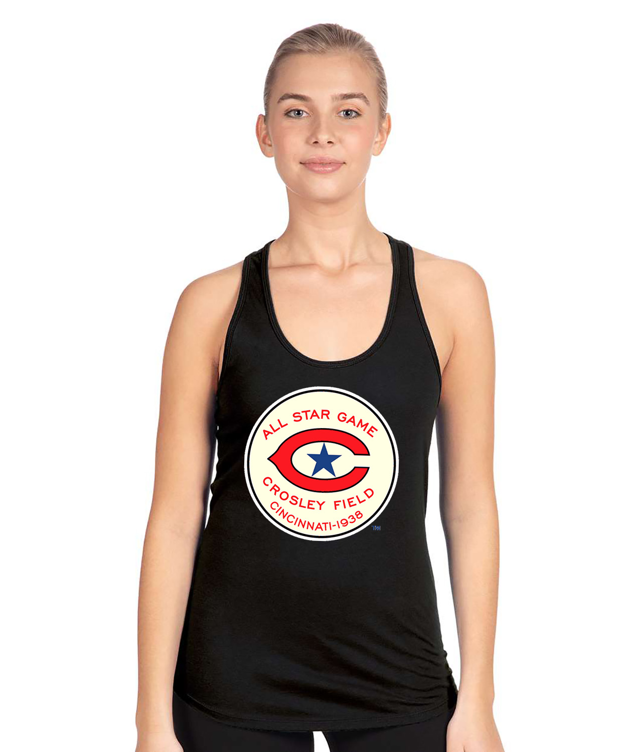 1938 MLB All-Star Game Crosley Field Cincinnati Ohio Baseball Logo Symbol Emblem Customized Design on Women’s Racerback Tank Top