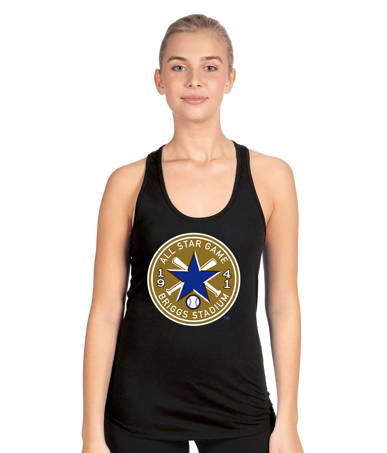 1941 MLB All-Star Game Briggs Stadium Detroit Michigan Baseball Logo Symbol Emblem Customized Design on Women’s Racerback Tank Top