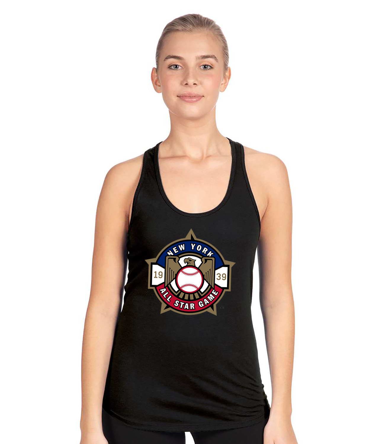 1939 MLB All-Star Game Yankee Stadium New York Baseball Logo Symbol Emblem Customized Design on Women’s Racerback Tank Top