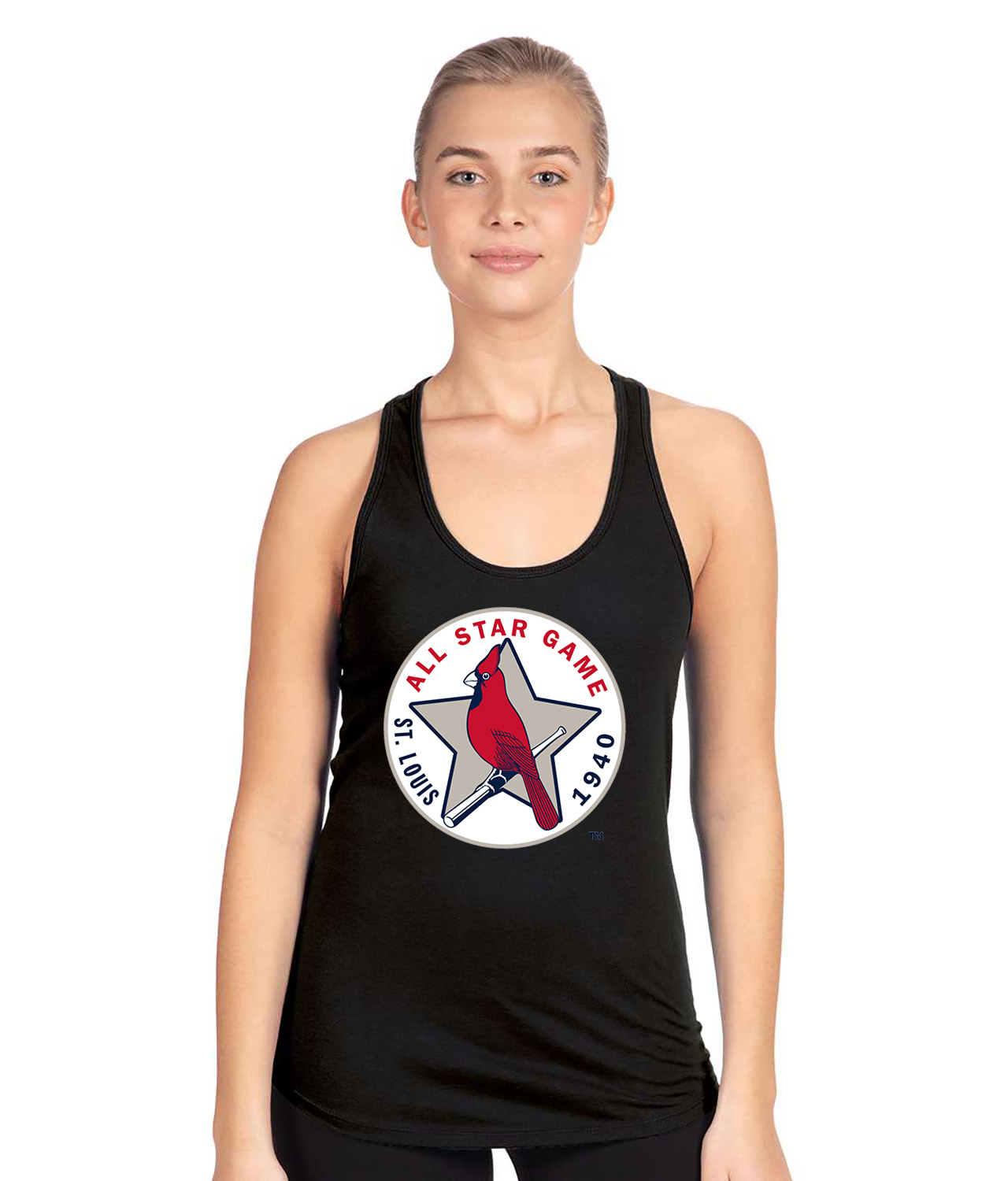 1940 MLB All-Star Game Sportsman’s Park St. Louis Missouri Baseball Logo Symbol Emblem Customized Design on Women’s Racerback Tank Top