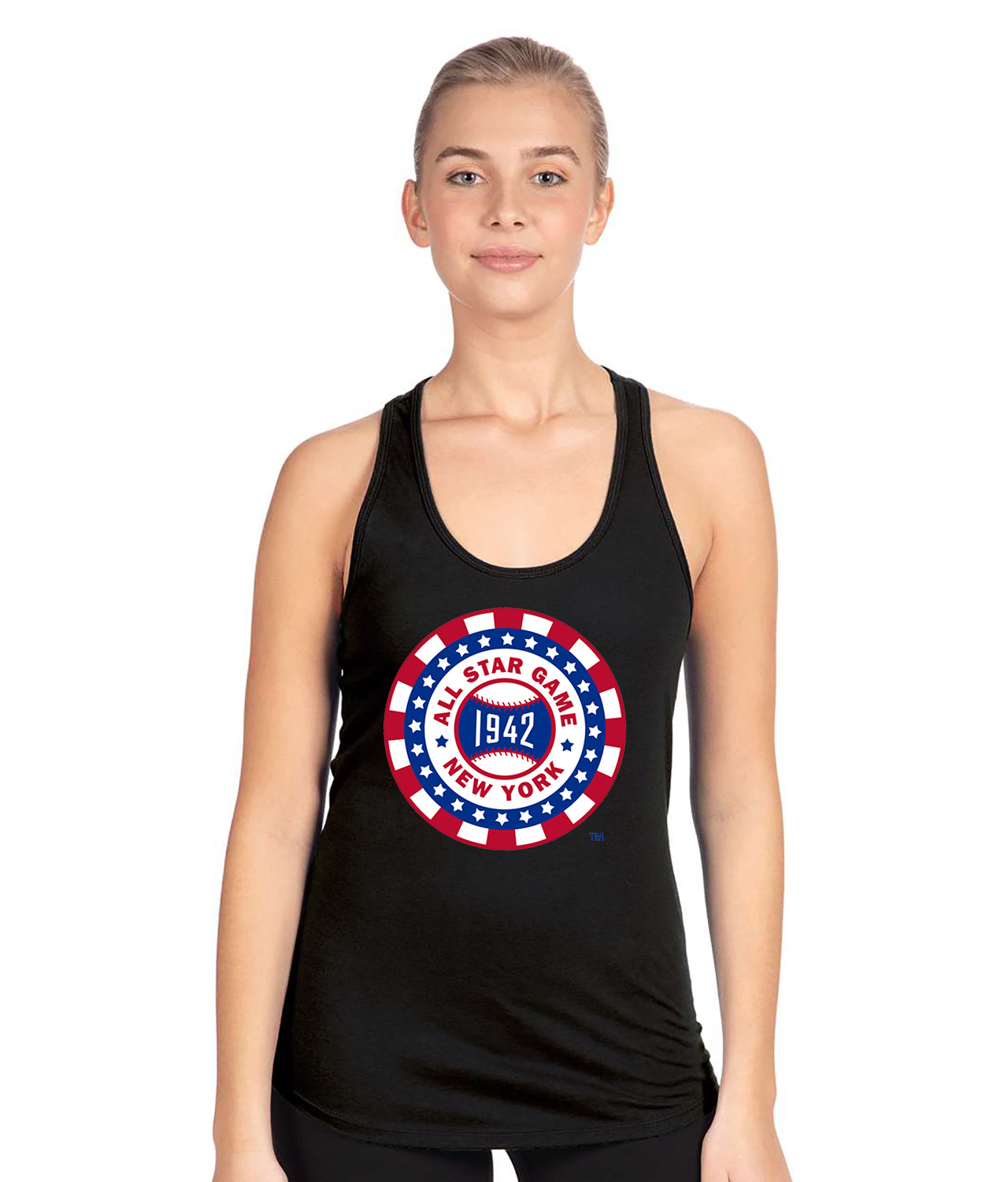 1942 MLB All-Star Game Polo Grounds New York Baseball Logo Symbol Emblem Customized Design on Women’s Racerback Tank Top