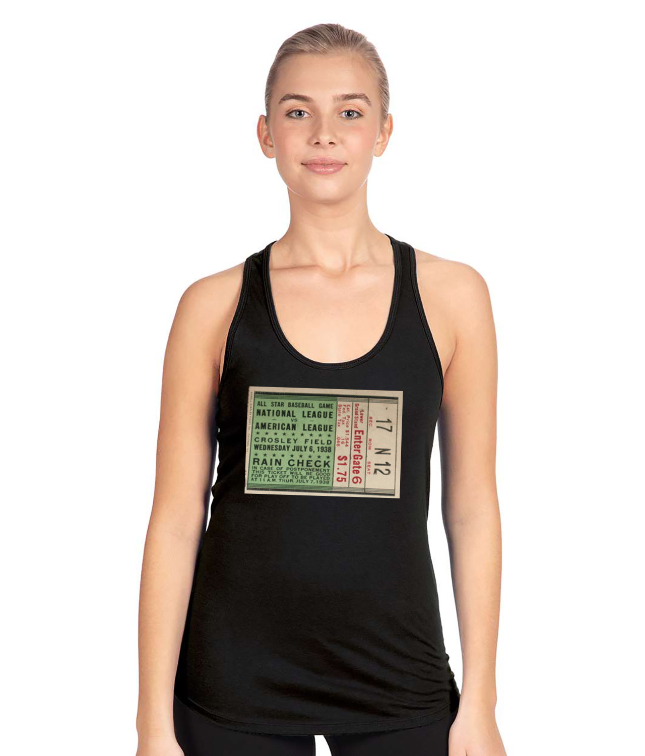 1938 MLB All-Star Game Ticket Stub Baseball Logo Symbol Emblem Customized Design on Women’s Racerback Tank Top