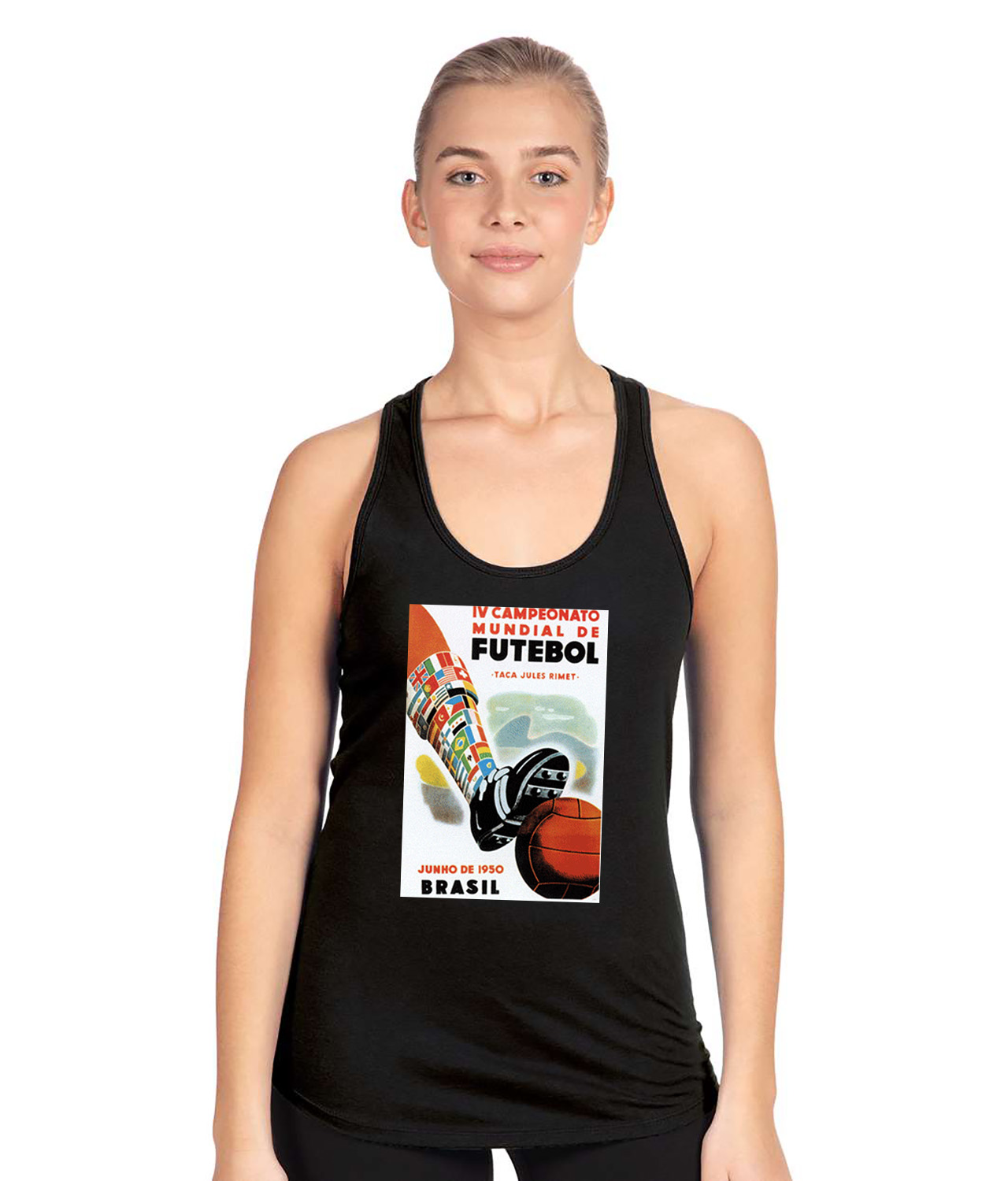1950 FIFA World Cup Brazil Soccer Logo Symbol Emblem Customized Design on Women’s Racerback Tank Top