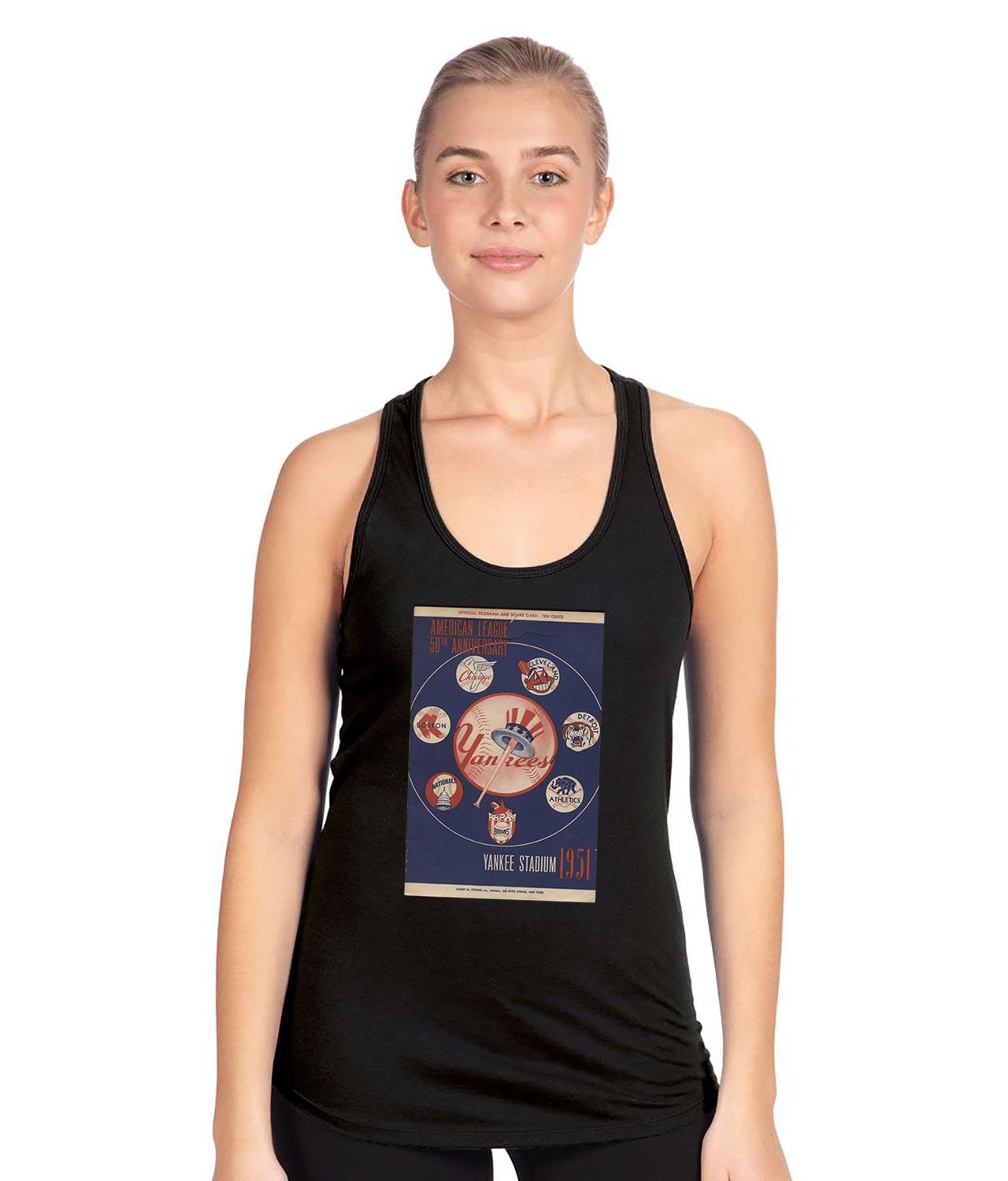 1951 New York Yankees Yankee Stadium Program Baseball Logo Symbol Emblem Customized Design on Women’s Racerback Tank Top