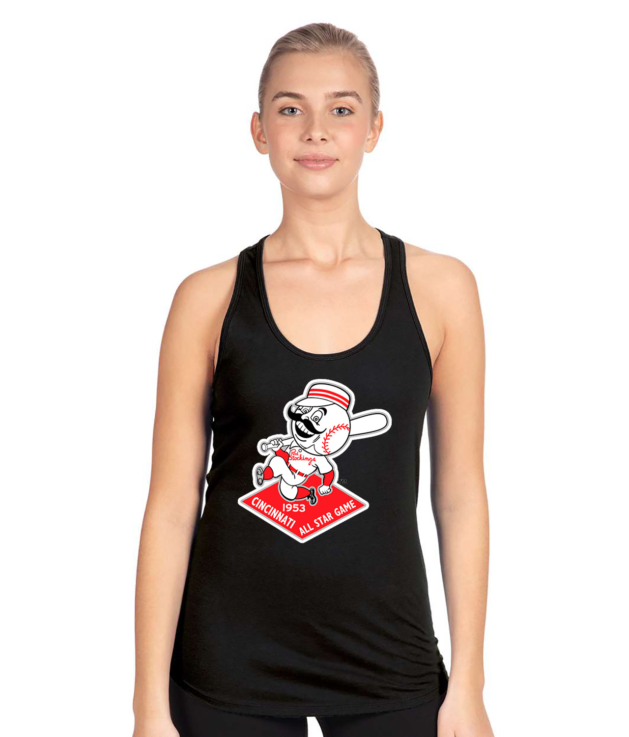 1953 MLB All-Star Game At Crosley Field Cincinnati Ohio Baseball Logo Symbol Emblem Customized Design on Women’s Racerback Tank Top