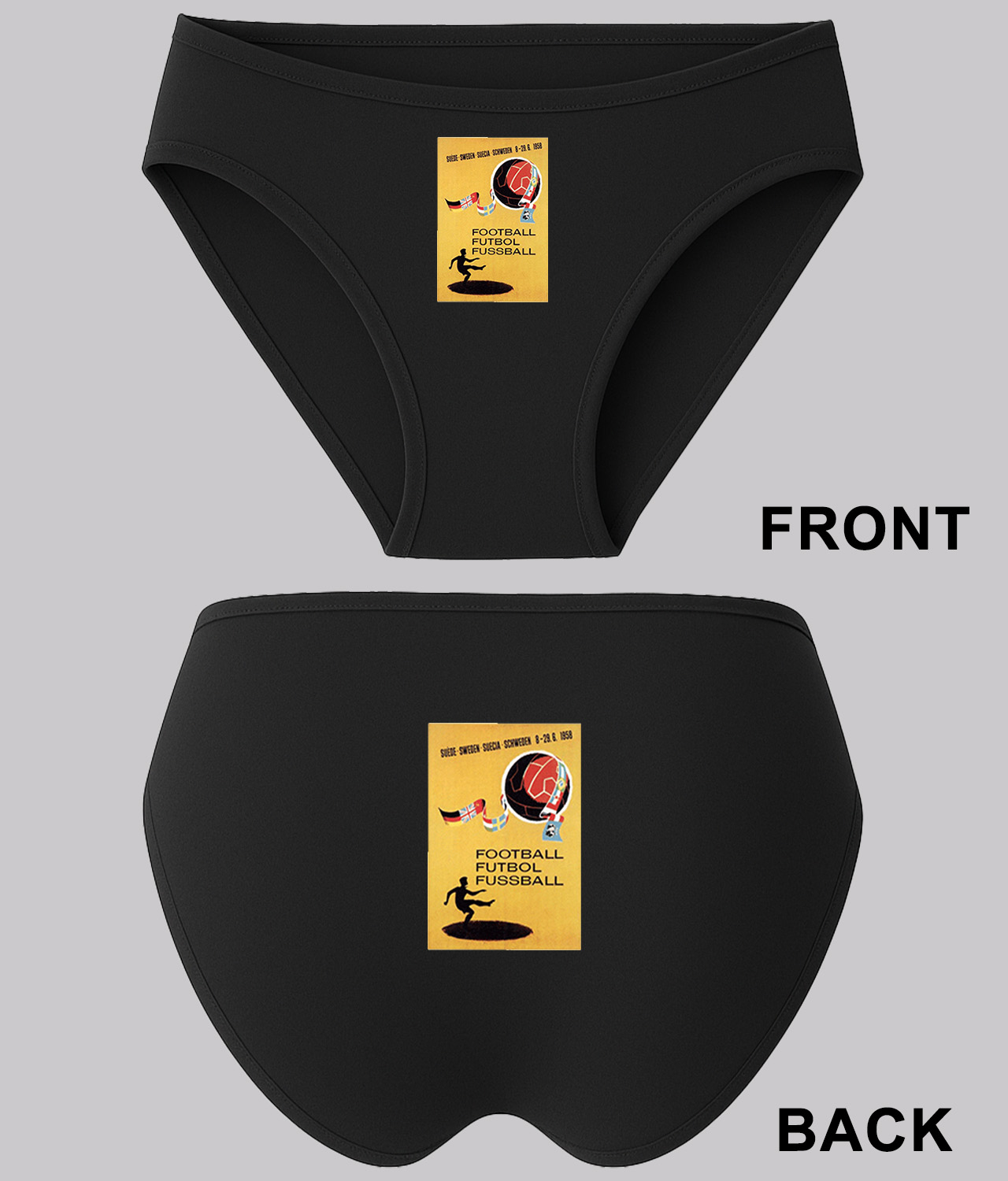 1958 FIFA World Cup Sweden Soccer Logo Symbol Emblem Customized Design on Women’s Bikini Brief Underwear