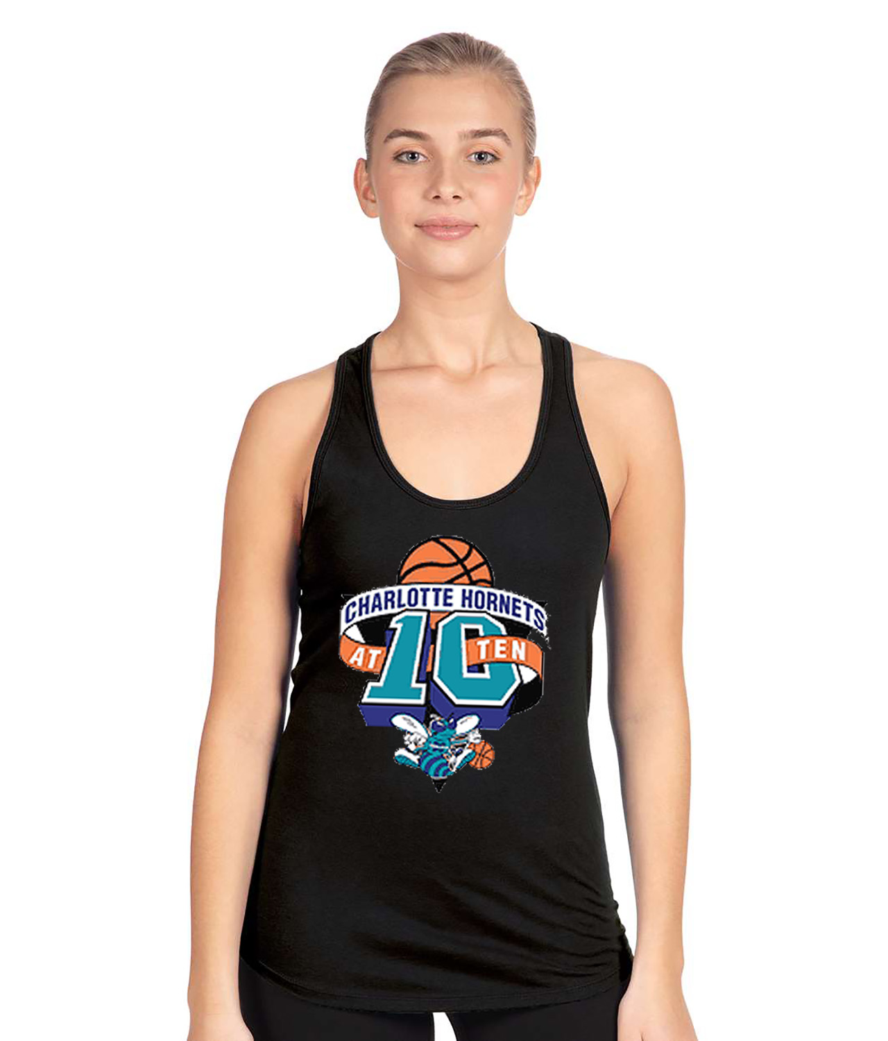 10th Anniversary Of The Charlotte Hornets NBA Basketball Logo Symbol Emblem Customized Design on Women’s Racerback Tank Top