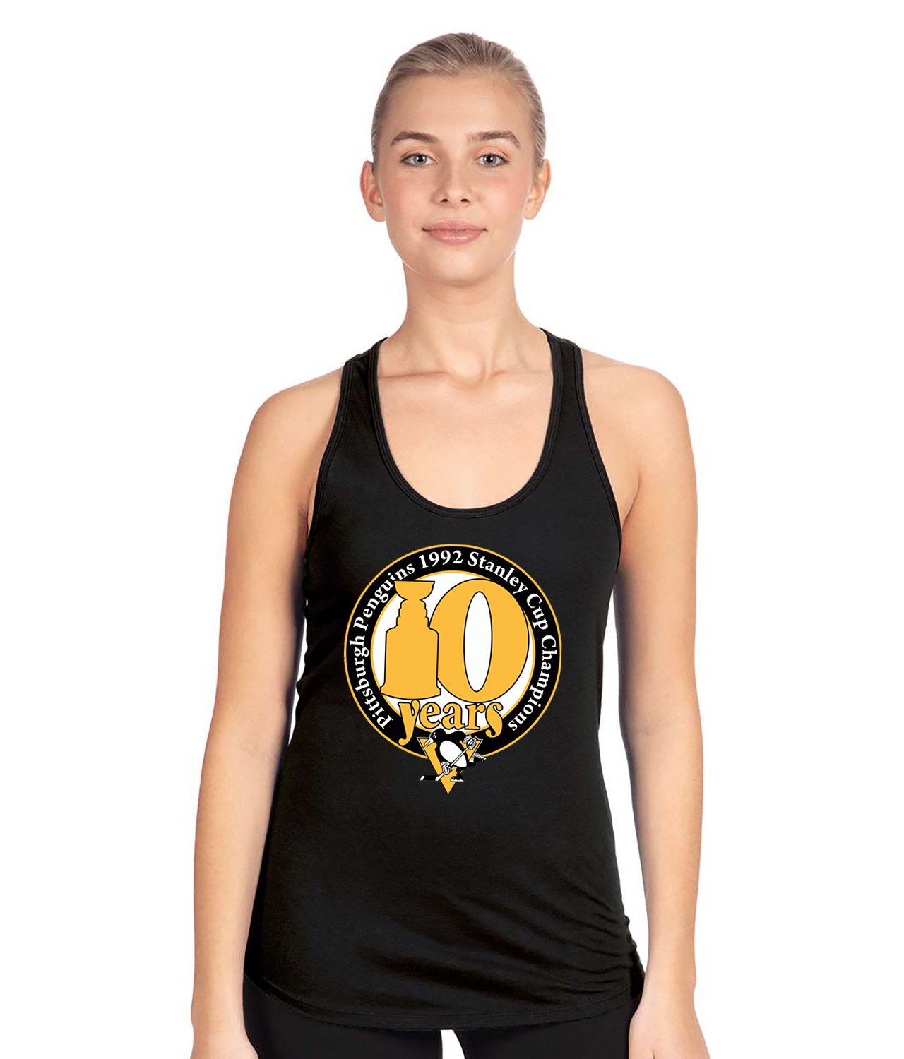 1992 Stanley Cup Champion Pittsburgh Penguins Hockey Logo Symbol Emblem Customized Design on Women’s Racerback Tank Top