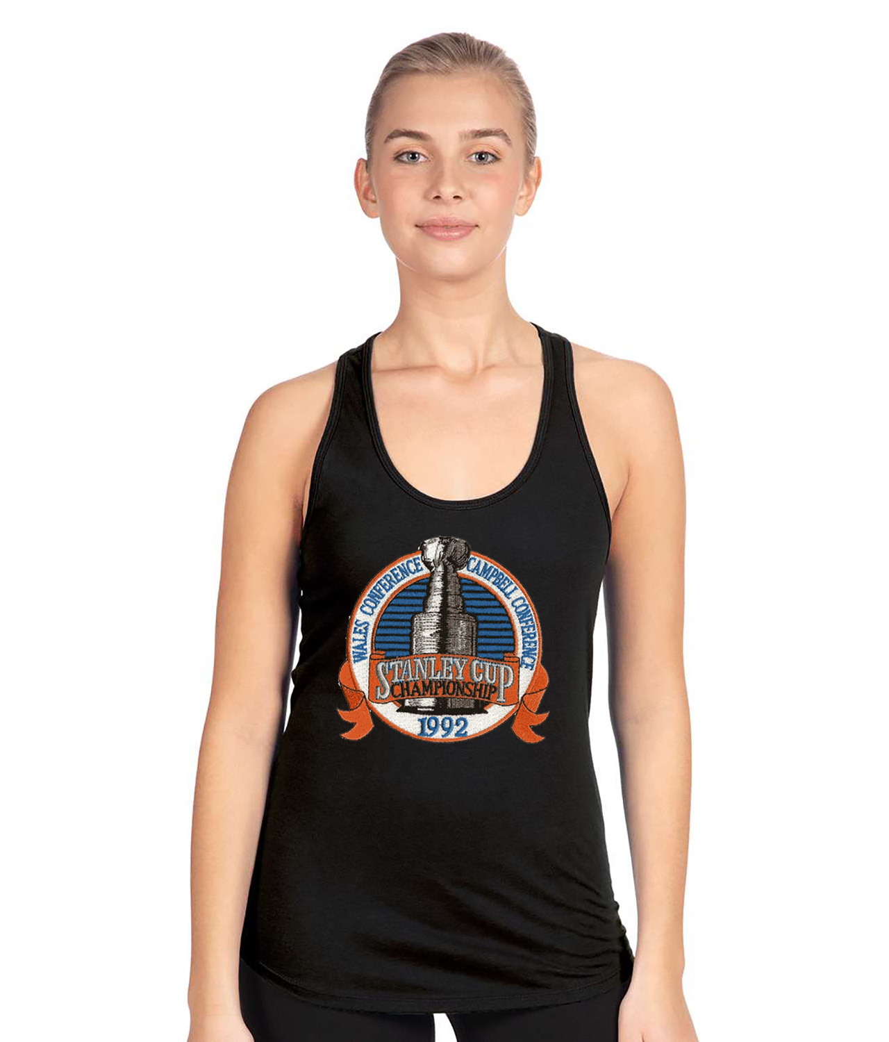 1992 NHL Stanley Cup Playoffs – Final Pittsburgh Penguins vs Chicago Blackhawks Hockey Logo Emblem Customized Design on Women’s Racerback Tank Top