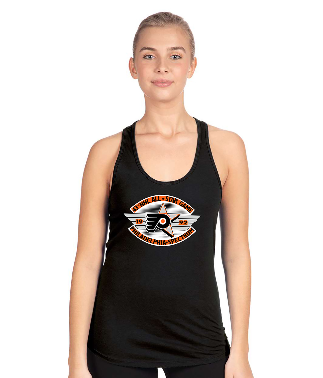 1992 NHL All Star Game In Philadelphia Hockey Logo Symbol Emblem Customized Design on Women’s Racerback Tank Top