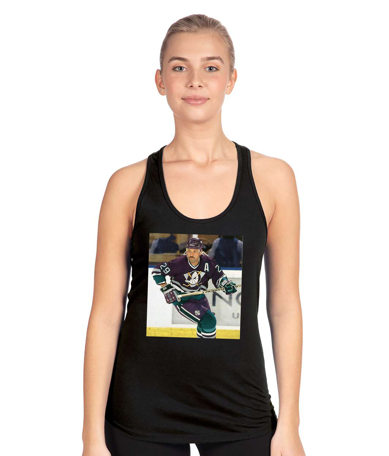 1993 Anaheim Ducks John Lilley Photo Hockey Logo Symbol Emblem Customized Design on Women’s Racerback Tank Top