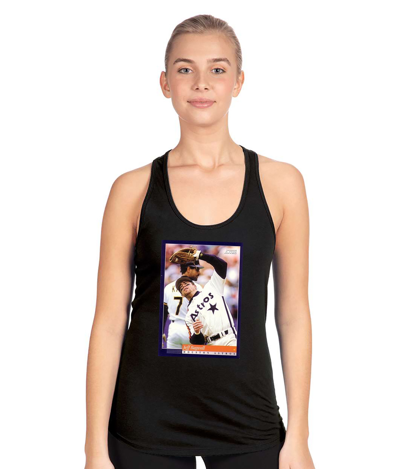 1993 Jeff Bagwell Houston Astros Photo Baseball Logo Symbol Emblem Customized Design on Women’s Racerback Tank Top