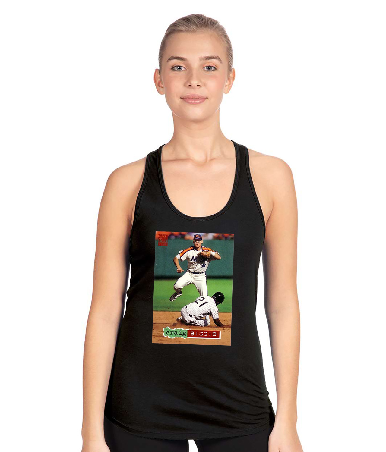 1993 Craig Biggio Houston Astros Photo Baseball Logo Symbol Emblem Customized Design on Women’s Racerback Tank Top