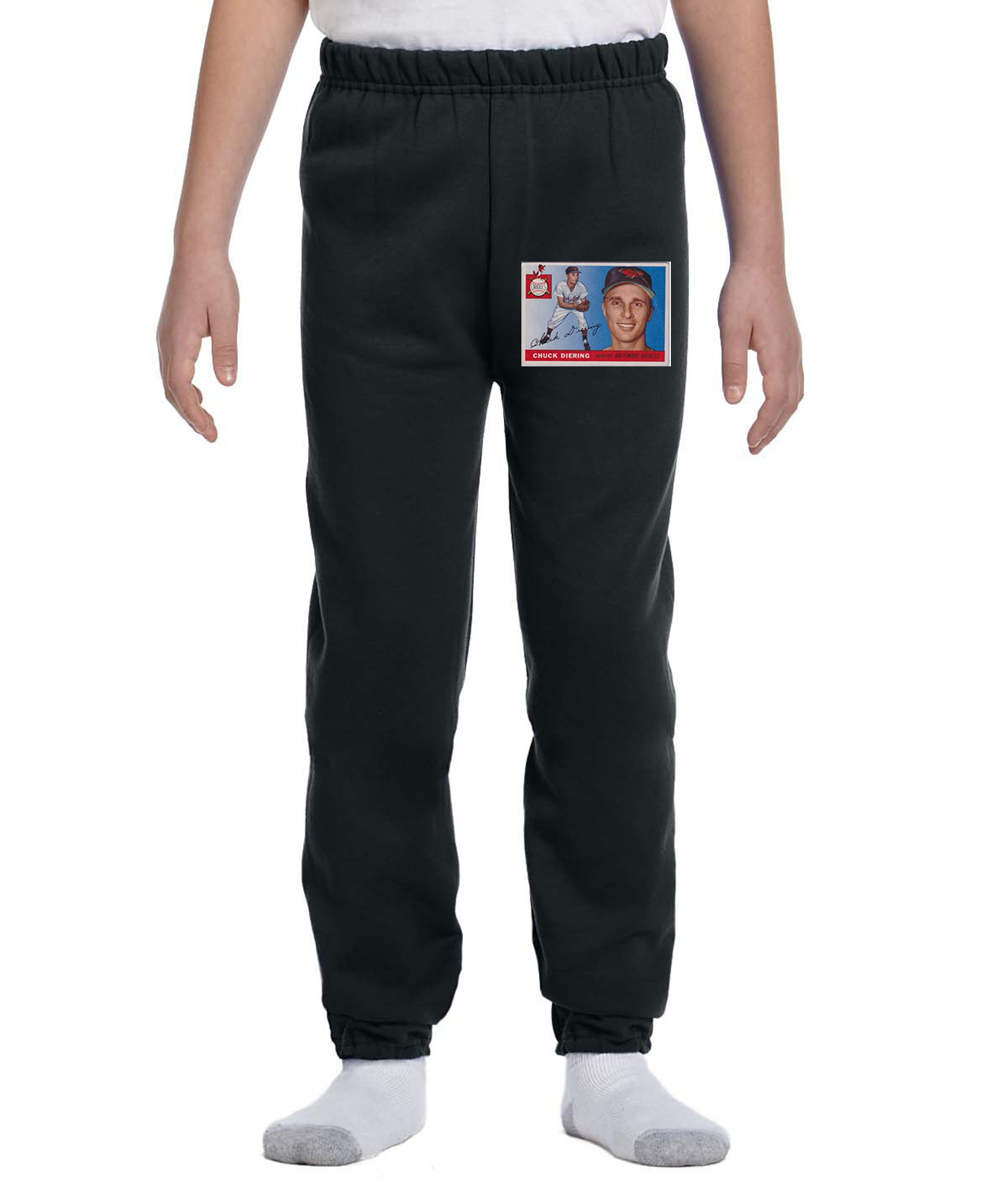 1955 Baltimore Orioles Chuck Diering Outfield Photo Baseball Logo Symbol Emblem Customized Design on Youth Closed-Bottom Sweatpants