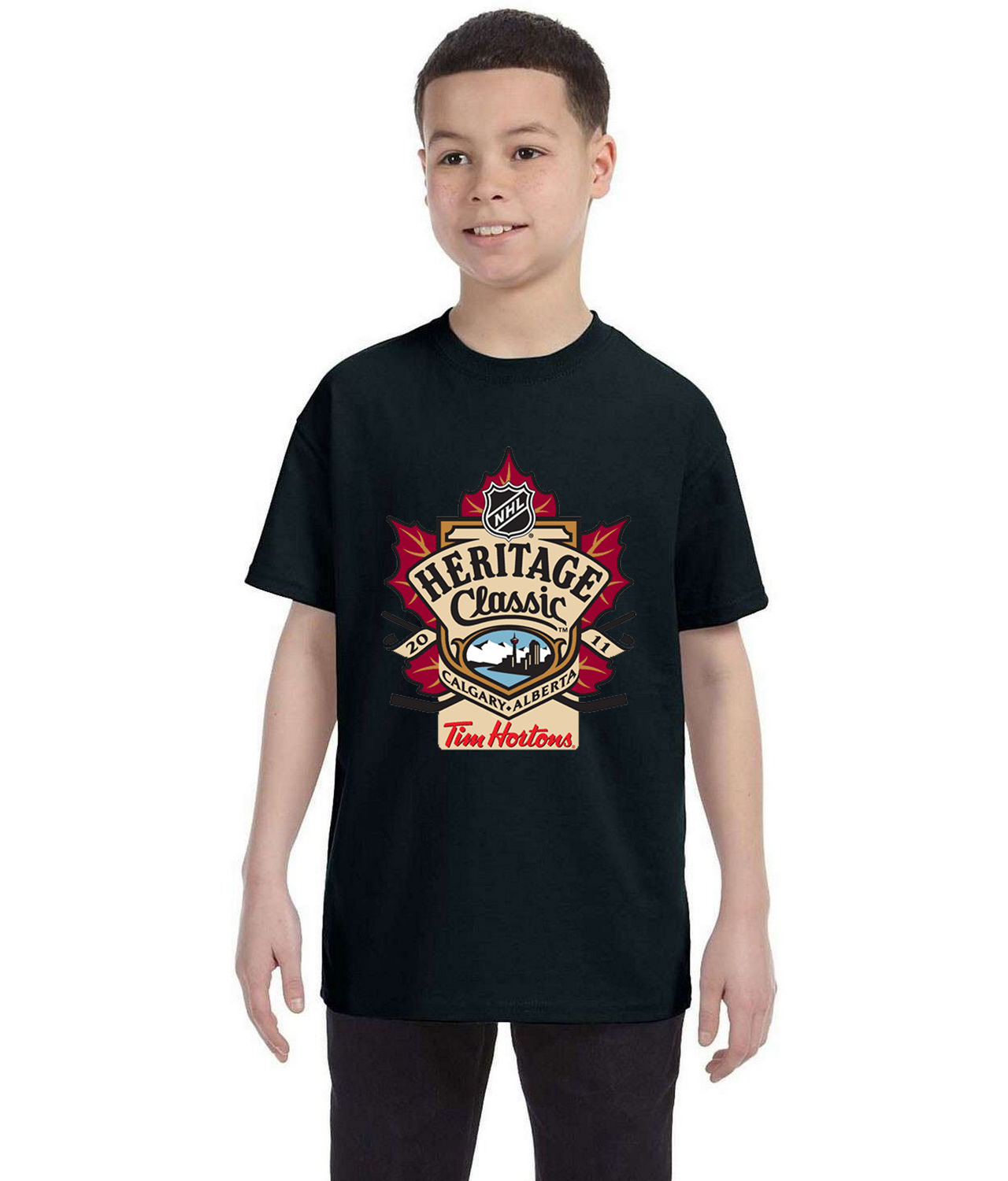 2011 Tim Hortons NHL Heritage Classic – Calgary Hockey Logo Symbol Emblem Customized Design on Youth T-Shirt Tee
