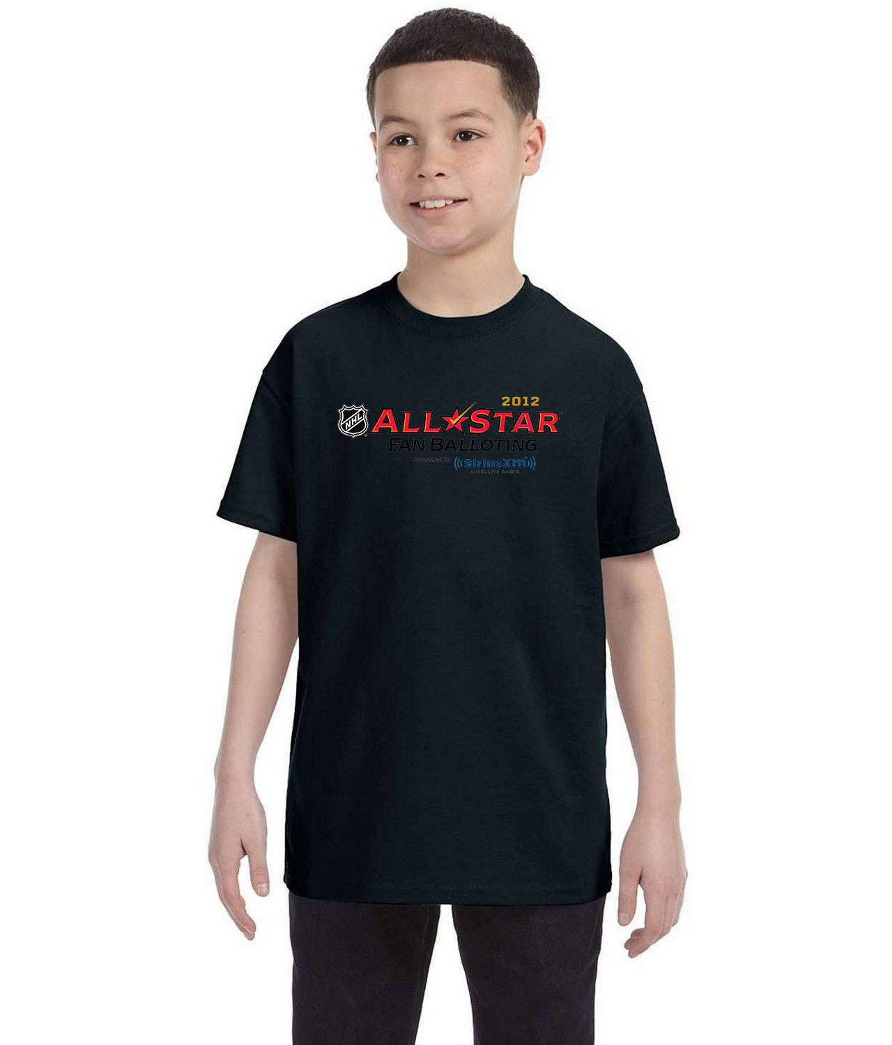 2012 NHL All Star Fan Balloting SiriusXM Hockey Logo Symbol Emblem Customized Design on Youth T-Shirt Tee