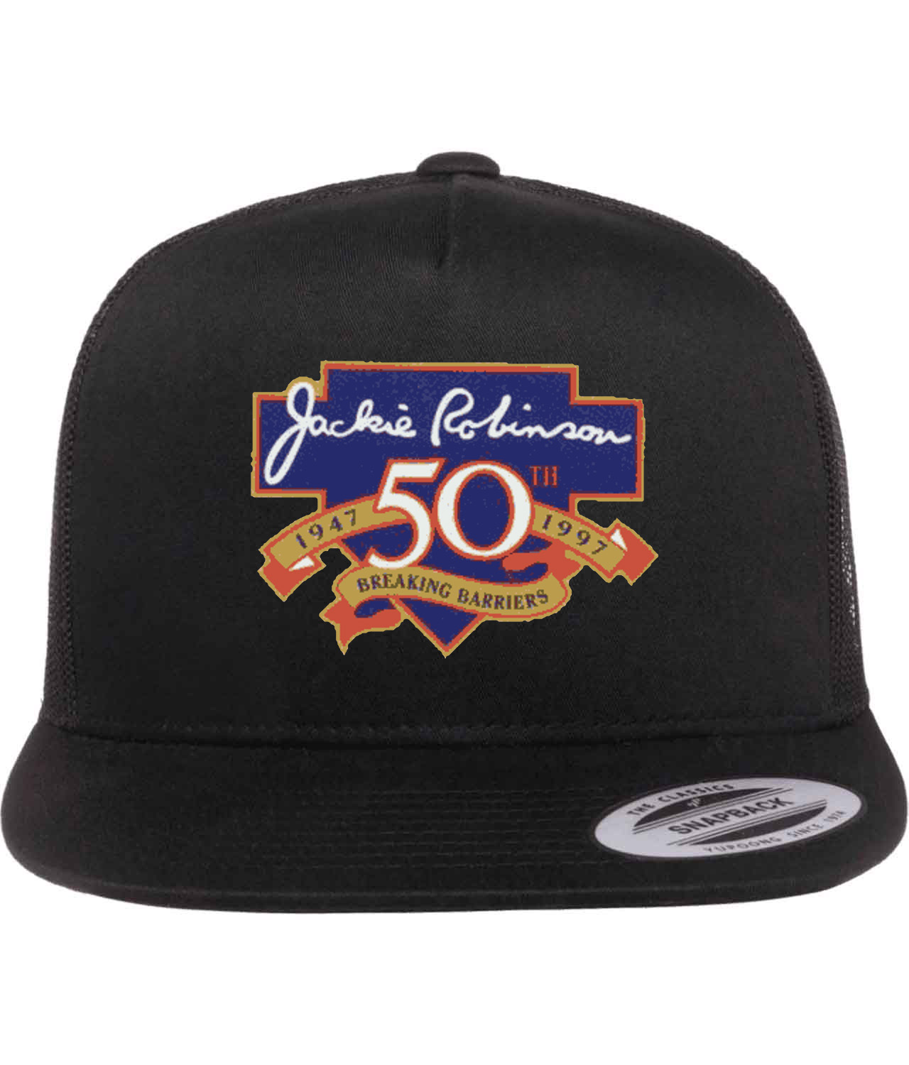 Major League Baseball 50th Anniversary Of The Jackie Robinson’s Debut Logo Emblem Customized Design on Classic Trucker Cap Hat
