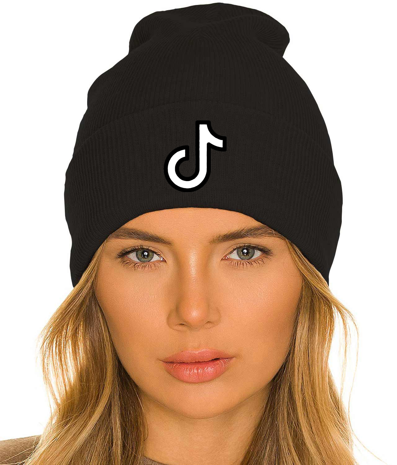 TikTok White Logo Symbol Emblem Customized Design on 12″ Cuffed Beanie Hat