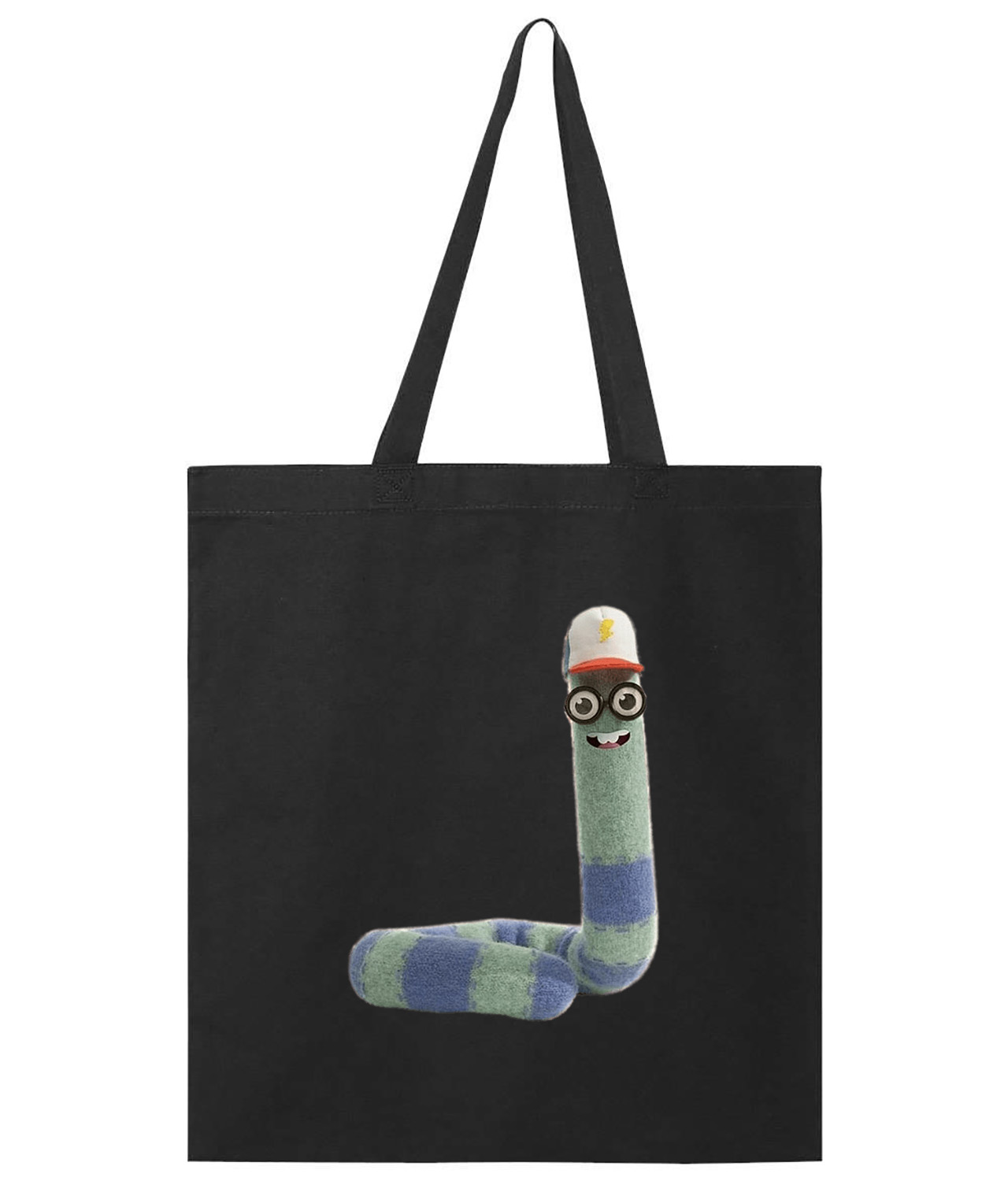 Becca’s Bunch Character Pedro the Worm Cartoon Logo Symbol Emblem Customized Design on Promotional Tote Bag