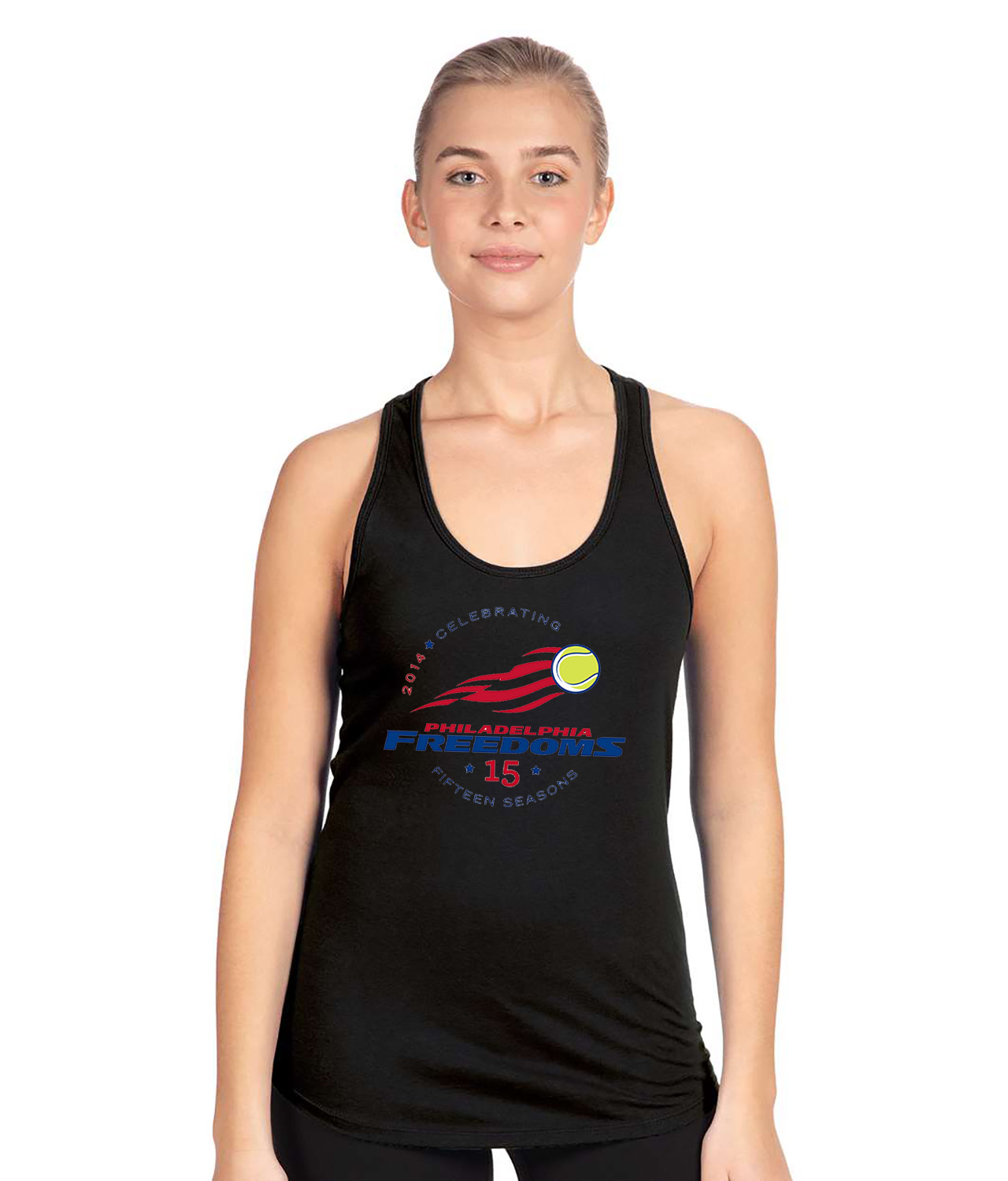 Philadelphia Freedoms 15th Season Tennis Logo Symbol Emblem Customized Design on Women’s Racerback Tank Top
