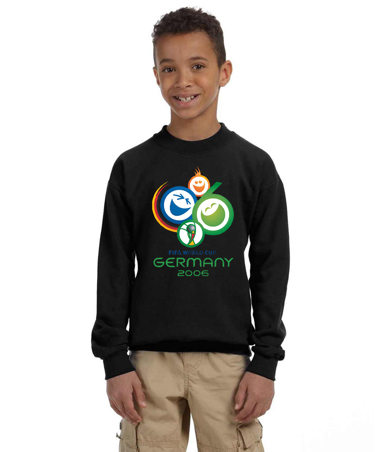 2006 FIFA World Cup Germany Soccer Logo Symbol Emblem Customized Design on Youth Crewneck Sweatshirt