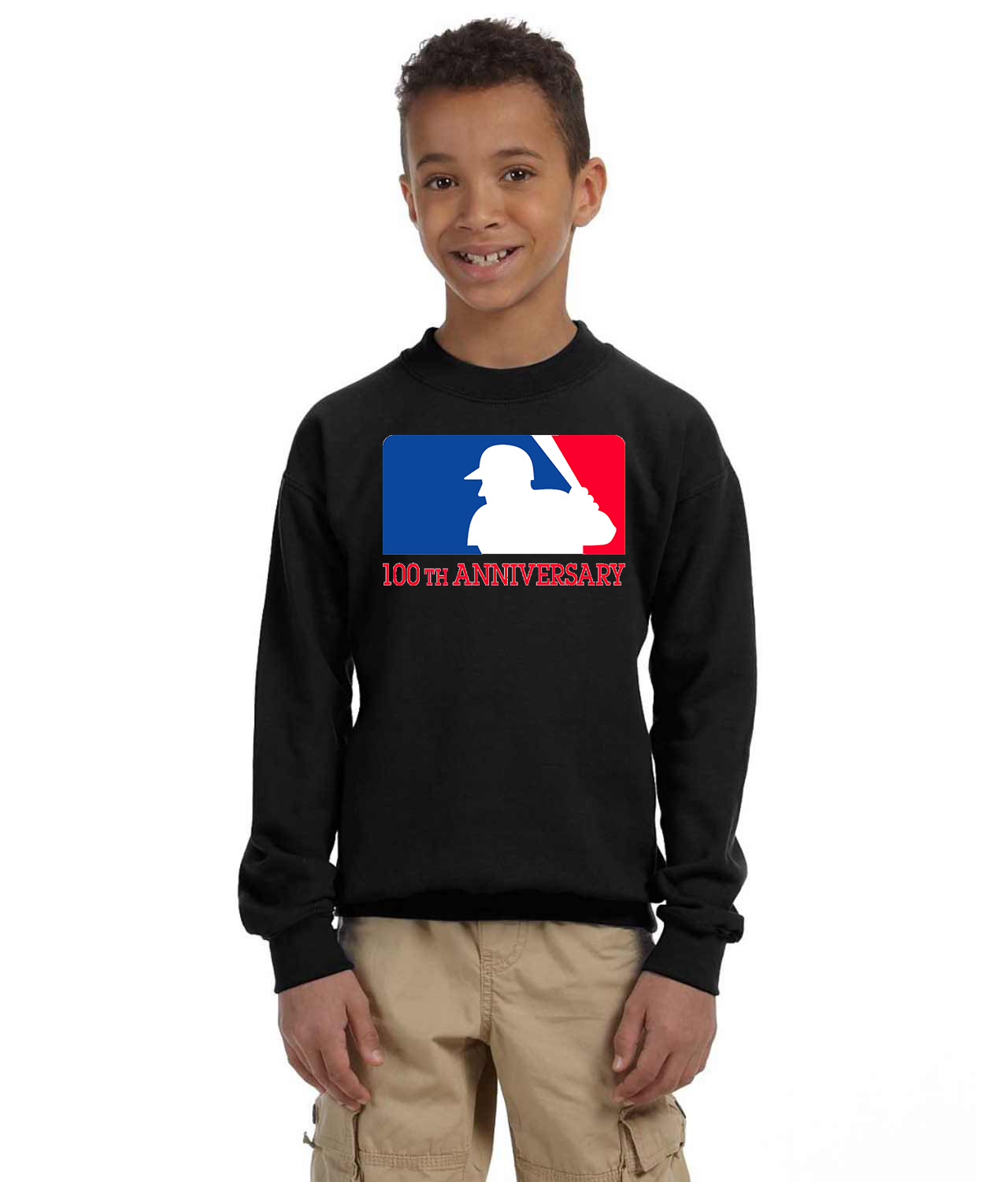 100th Anniversary Of The American Baseball League Baseball Logo Symbol Emblem Customized Design on Youth Crewneck Sweatshirt