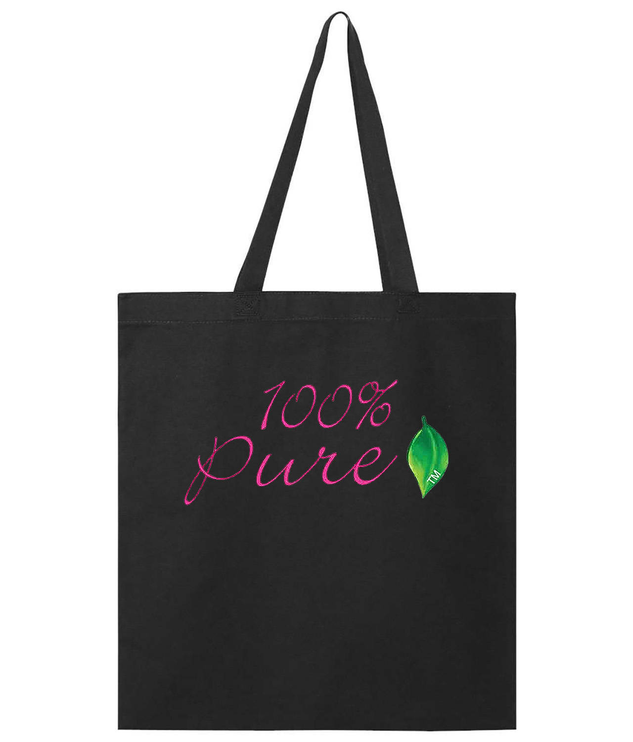 100 % Pure Cosmetics Makeup Black Logo Symbol Emblem Customized Design on Promotional Tote Bag
