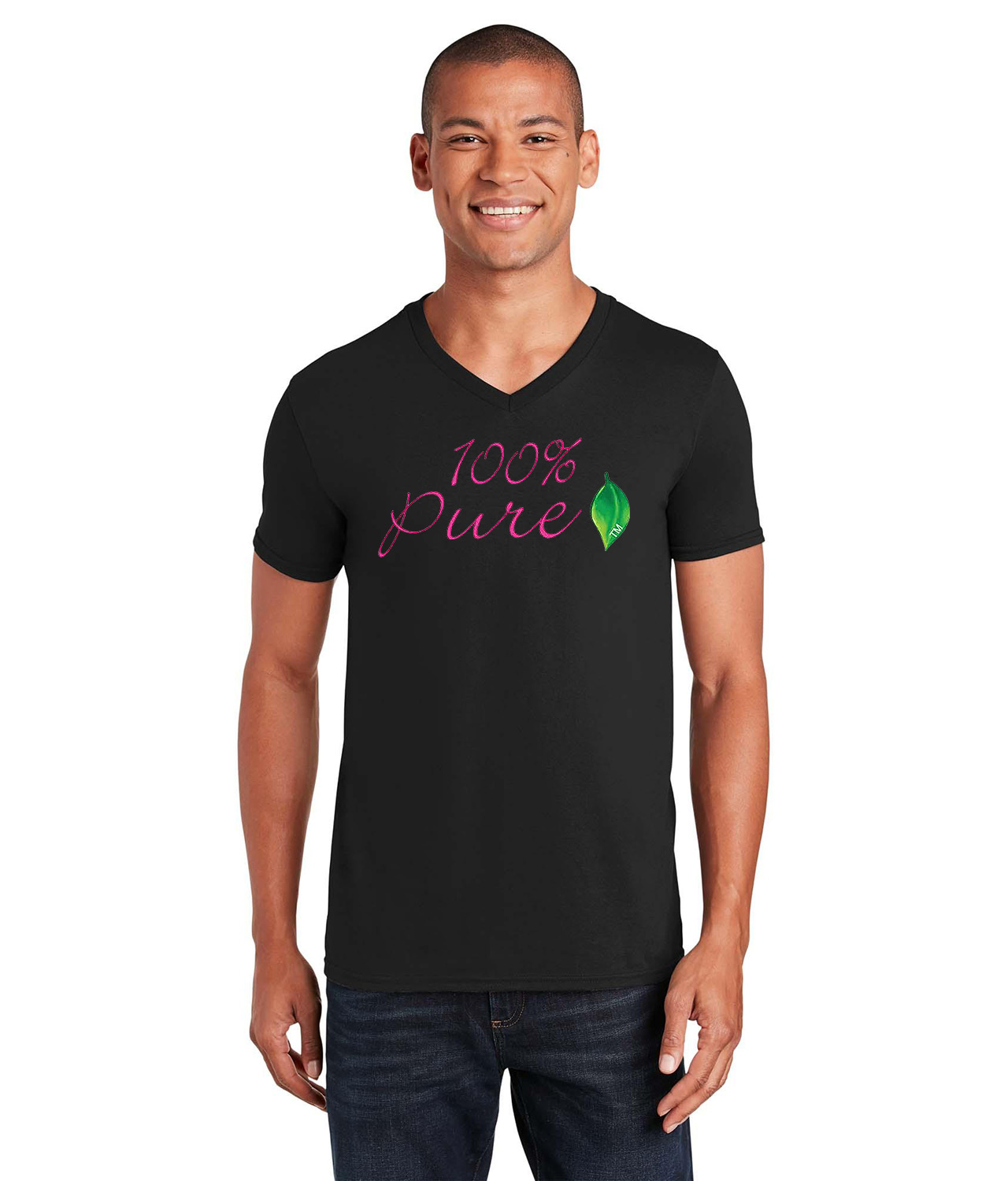 100 % Pure Cosmetics Makeup Logo Symbol Emblem Customized Design on Unisex V-Neck T-Shirt Tee