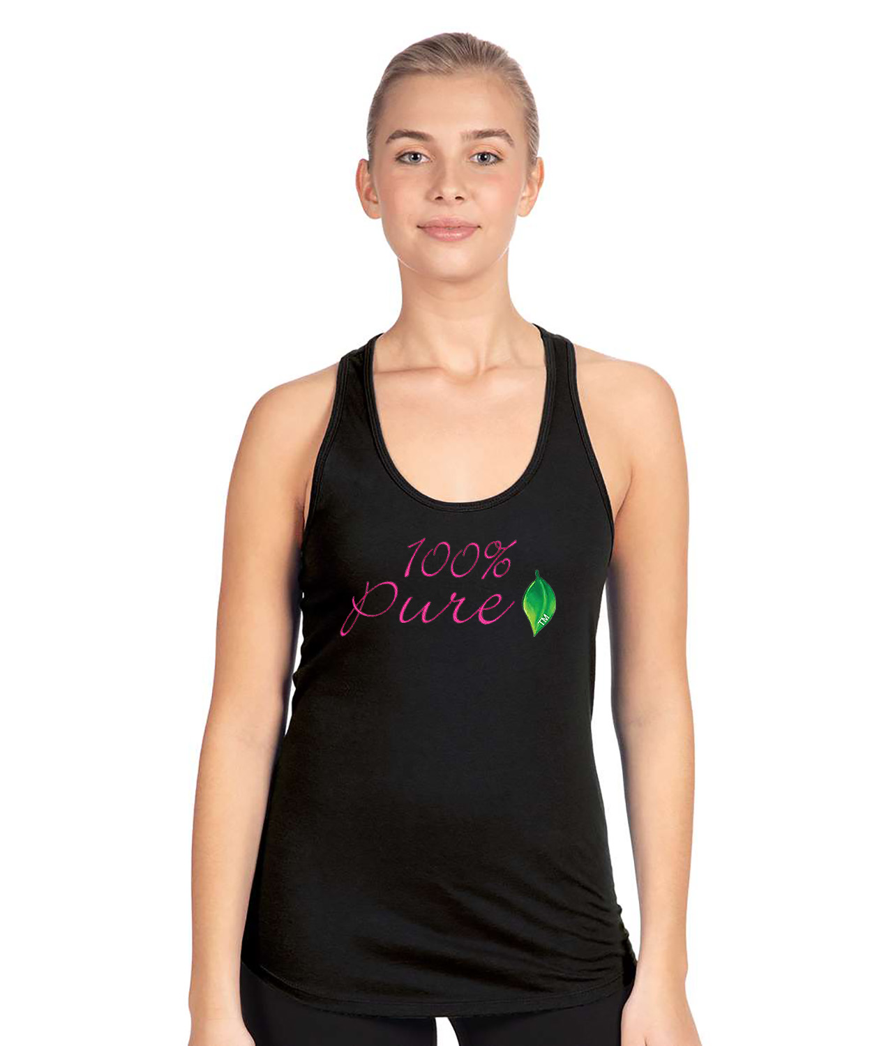 100 % Pure Cosmetics Makeup Logo Symbol Emblem Customized Design on Women’s Racerback Tank Top