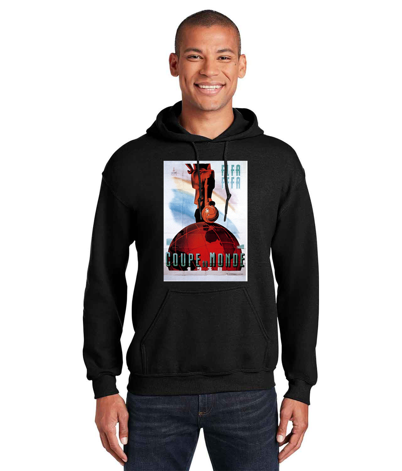 1938 FIFA World Cup France Logo Symbol Emblem Customized Soccer Design on Unisex Hooded Sweatshirt